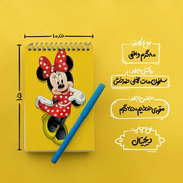 برند خندالو در زمینه تولید انواع دفاتر فانتزی و تحصیلی فعالیت میکند که به دلیل جذابیت ظاهری و طرح های متنوع طرفداران زیادی دارد. دفتر یادداشت خندالو طرح میکی موس Mickey Mouse محصولی مناسب برای همه عاشقان لوازم التحریر است و همچنین همه کسانی که بنا به موقعیت تحصیل یا شغلشان با دفتر و نوشت افزار زیاد سر و کار دارند. در تولید دفتر یادداشت خندالو طرح میکی موس Mickey Mouse از نوع صحافی فنر مارپیچ استفاده شده که در این نوع صحافی برگه‌ها به راحتی چرخیده و یا بیرون آورده می شوند.