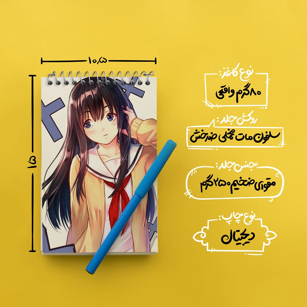 برند خندالو در زمینه تولید انواع دفاتر فانتزی و تحصیلی فعالیت میکند که به دلیل جذابیت ظاهری و طرح های متنوع طرفداران زیادی دارد. دفتر یادداشت خندالو طرح نائوکو انیمه سایلنت ویس A Silent Voice محصولی مناسب برای همه عاشقان لوازم التحریر است و همچنین همه کسانی که بنا به موقعیت تحصیل یا شغلشان با دفتر و نوشت افزار زیاد سر و کار دارند. در تولید دفتر یادداشت خندالو طرح نائوکو انیمه سایلنت ویس A Silent Voice از نوع صحافی فنر مارپیچ استفاده شده که در این نوع صحافی برگهها به راحتی چرخیده و یا بیرون آورده می شوند. دفتر های خندالو دارای جلد انعطاف پذیر از جنس مقوای گلاسه 250 گرم با روکش سلفون مات مخملی است که به شما امکان میدهد از دفتر خود بدون اینکه نگرانی از شکستن یا خراب شدن جلد را داشته باشید استفاده کنید و همچنین در این دفاتر از کاغذ 80 گرم با کیفیت استفاده شده که باعث میشود هنگام نوشتن به خوبی جوهر قلم بر روی صفحه نشسته و از خط خوردگیها جلوگیری کند. دفتر یادداشت خندالو با جنس و دوام مناسب، برگه های کاملاً سفید و خطوط طوسی دقیق را داراست که انسان را به نوشتن منظم و زیبا ترغیب میکند. طراحی کاملاً مناسب این دفاتر، به همراه کیفیت بالا، از آن یک محصول مورد علاقه و قابل اعتماد برای همه مقاطع تحصیلی میسازد. دفتر یادداشت خندالو طرح نائوکو انیمه سایلنت ویس A Silent Voice انتخابی هوشمندانه و مناسب برای افرادی است که به دنبال دفتری با کیفیت و کاربرد عالی هستند. این دفتر، همراه خوبی برای شما در تمام مراحل تحصیل و کار خواهد بود و تجربهای لذتبخش از نوشتن و آموختن را به شما هدیه میدهد.