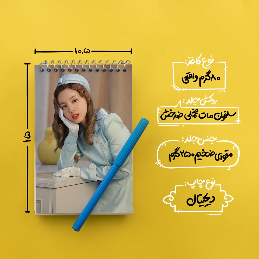 برند خندالو در زمینه تولید انواع دفاتر فانتزی و تحصیلی فعالیت میکند که به دلیل جذابیت ظاهری و طرح های متنوع طرفداران زیادی دارد. دفتر یادداشت خندالو طرح نایون گروه توایس TWICE محصولی مناسب برای همه عاشقان لوازم التحریر است و همچنین همه کسانی که بنا به موقعیت تحصیل یا شغلشان با دفتر و نوشت افزار زیاد سر و کار دارند. در تولید دفتر یادداشت خندالو طرح نایون گروه توایس TWICE از نوع صحافی فنر مارپیچ استفاده شده که در این نوع صحافی برگه‌ها به راحتی چرخیده و یا بیرون آورده می شوند.