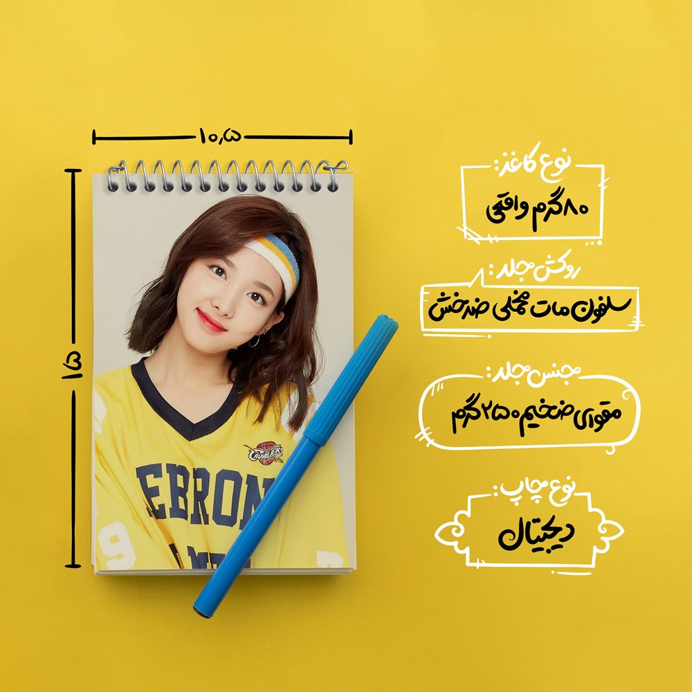 برند خندالو در زمینه تولید انواع دفاتر فانتزی و تحصیلی فعالیت میکند که به دلیل جذابیت ظاهری و طرح های متنوع طرفداران زیادی دارد. دفتر یادداشت خندالو طرح نایون گروه توایس TWICE محصولی مناسب برای همه عاشقان لوازم التحریر است و همچنین همه کسانی که بنا به موقعیت تحصیل یا شغلشان با دفتر و نوشت افزار زیاد سر و کار دارند. در تولید دفتر یادداشت خندالو طرح نایون گروه توایس TWICE از نوع صحافی فنر مارپیچ استفاده شده که در این نوع صحافی برگه‌ها به راحتی چرخیده و یا بیرون آورده می شوند.