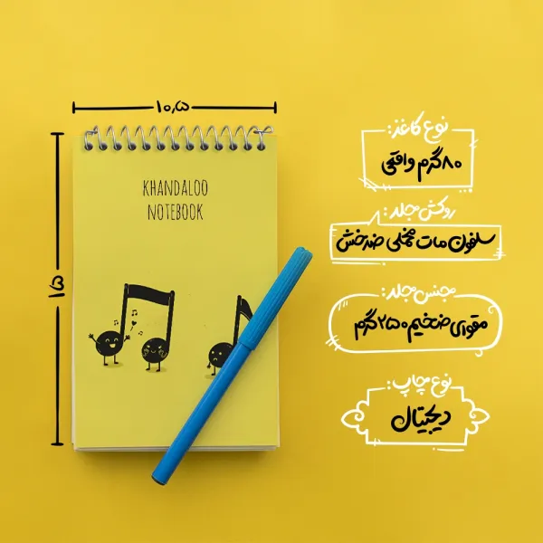 برند خندالو در زمینه تولید انواع دفاتر فانتزی و تحصیلی فعالیت میکند که به دلیل جذابیت ظاهری و طرح های متنوع طرفداران زیادی دارد. دفتر یادداشت خندالو طرح نت موسیقی محصولی مناسب برای همه عاشقان لوازم التحریر است و همچنین همه کسانی که بنا به موقعیت تحصیل یا شغلشان با دفتر و نوشت افزار زیاد سر و کار دارند. در تولید دفتر یادداشت خندالو طرح نت موسیقی از نوع صحافی فنر مارپیچ استفاده شده که در این نوع صحافی برگه‌ها به راحتی چرخیده و یا بیرون آورده می شوند.