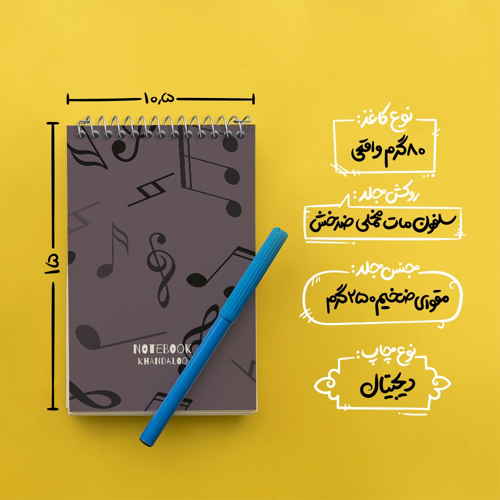 برند خندالو در زمینه تولید انواع دفاتر فانتزی و تحصیلی فعالیت میکند که به دلیل جذابیت ظاهری و طرح های متنوع طرفداران زیادی دارد. دفتر یادداشت خندالو طرح نت موسیقی محصولی مناسب برای همه عاشقان لوازم التحریر است و همچنین همه کسانی که بنا به موقعیت تحصیل یا شغلشان با دفتر و نوشت افزار زیاد سر و کار دارند. در تولید دفتر یادداشت خندالو طرح نت موسیقی از نوع صحافی فنر مارپیچ استفاده شده که در این نوع صحافی برگه‌ها به راحتی چرخیده و یا بیرون آورده می شوند.