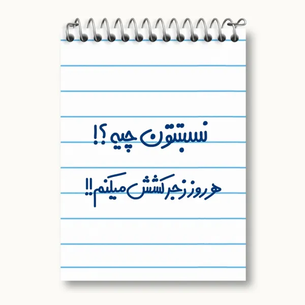 برند خندالو در زمینه تولید انواع دفاتر فانتزی و تحصیلی فعالیت میکند که به دلیل جذابیت ظاهری و طرح های متنوع طرفداران زیادی دارد. دفتر یادداشت خندالو طرح نسبتتون چیه؟! هرروز زجرکشش میکنم!! محصولی مناسب برای همه عاشقان لوازم التحریر است و همچنین همه کسانی که بنا به موقعیت تحصیل یا شغلشان با دفتر و نوشت افزار زیاد سر و کار دارند. در تولید دفتر یادداشت خندالو طرح نسبتتون چیه؟! هرروز زجرکشش میکنم!! از نوع صحافی فنر مارپیچ استفاده شده که در این نوع صحافی برگهها به راحتی چرخیده و یا بیرون آورده می شوند. دفتر های خندالو دارای جلد انعطاف پذیر از جنس مقوای گلاسه 250 گرم با روکش سلفون مات مخملی است که به شما امکان میدهد از دفتر خود بدون اینکه نگرانی از شکستن یا خراب شدن جلد را داشته باشید استفاده کنید و همچنین در این دفاتر از کاغذ 80 گرم با کیفیت استفاده شده که باعث میشود هنگام نوشتن به خوبی جوهر قلم بر روی صفحه نشسته و از خط خوردگیها جلوگیری کند. دفتر یادداشت خندالو با جنس و دوام مناسب، برگه های کاملاً سفید و خطوط طوسی دقیق را داراست که انسان را به نوشتن منظم و زیبا ترغیب میکند. طراحی کاملاً مناسب این دفاتر، به همراه کیفیت بالا، از آن یک محصول مورد علاقه و قابل اعتماد برای همه مقاطع تحصیلی میسازد. دفتر یادداشت خندالو طرح نسبتتون چیه؟! هرروز زجرکشش میکنم!! انتخابی هوشمندانه و مناسب برای افرادی است که به دنبال دفتری با کیفیت و کاربرد عالی هستند. این دفتر، همراه خوبی برای شما در تمام مراحل تحصیل و کار خواهد بود و تجربهای لذتبخش از نوشتن و آموختن را به شما هدیه میدهد.