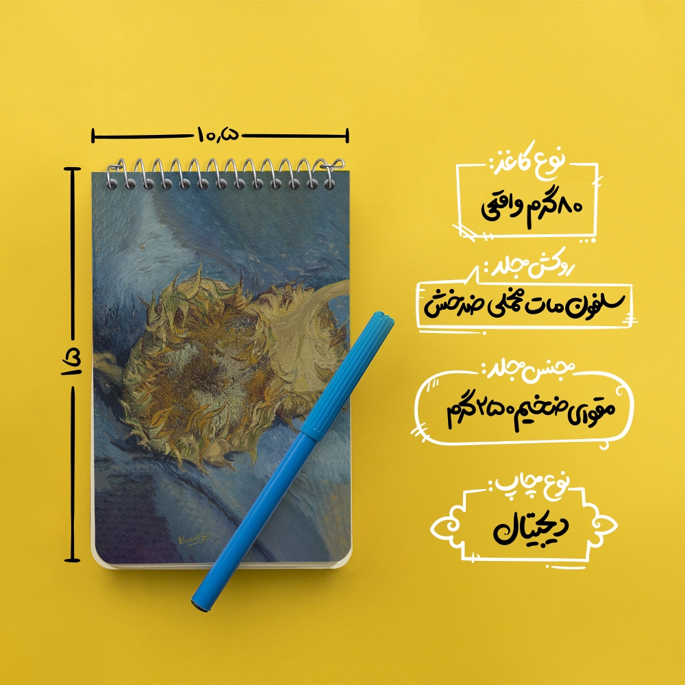 برند خندالو در زمینه تولید انواع دفاتر فانتزی و تحصیلی فعالیت میکند که به دلیل جذابیت ظاهری و طرح های متنوع طرفداران زیادی دارد. دفتر یادداشت خندالو طرح نقاشی آفتابگردان اثر ونسان ونگوگ محصولی مناسب برای همه عاشقان لوازم التحریر است و همچنین همه کسانی که بنا به موقعیت تحصیل یا شغلشان با دفتر و نوشت افزار زیاد سر و کار دارند. در تولید دفتر یادداشت خندالو طرح نقاشی آفتابگردان اثر ونسان ونگوگ از نوع صحافی فنر مارپیچ استفاده شده که در این نوع صحافی برگهها به راحتی چرخیده و یا بیرون آورده می شوند. دفتر های خندالو دارای جلد انعطاف پذیر از جنس مقوای گلاسه 250 گرم با روکش سلفون مات مخملی است که به شما امکان میدهد از دفتر خود بدون اینکه نگرانی از شکستن یا خراب شدن جلد را داشته باشید استفاده کنید و همچنین در این دفاتر از کاغذ 80 گرم با کیفیت استفاده شده که باعث میشود هنگام نوشتن به خوبی جوهر قلم بر روی صفحه نشسته و از خط خوردگیها جلوگیری کند. دفتر یادداشت خندالو با جنس و دوام مناسب، برگه های کاملاً سفید و خطوط طوسی دقیق را داراست که انسان را به نوشتن منظم و زیبا ترغیب میکند. طراحی کاملاً مناسب این دفاتر، به همراه کیفیت بالا، از آن یک محصول مورد علاقه و قابل اعتماد برای همه مقاطع تحصیلی میسازد. دفتر یادداشت خندالو طرح نقاشی آفتابگردان اثر ونسان ونگوگ انتخابی هوشمندانه و مناسب برای افرادی است که به دنبال دفتری با کیفیت و کاربرد عالی هستند. این دفتر، همراه خوبی برای شما در تمام مراحل تحصیل و کار خواهد بود و تجربهای لذتبخش از نوشتن و آموختن را به شما هدیه میدهد.