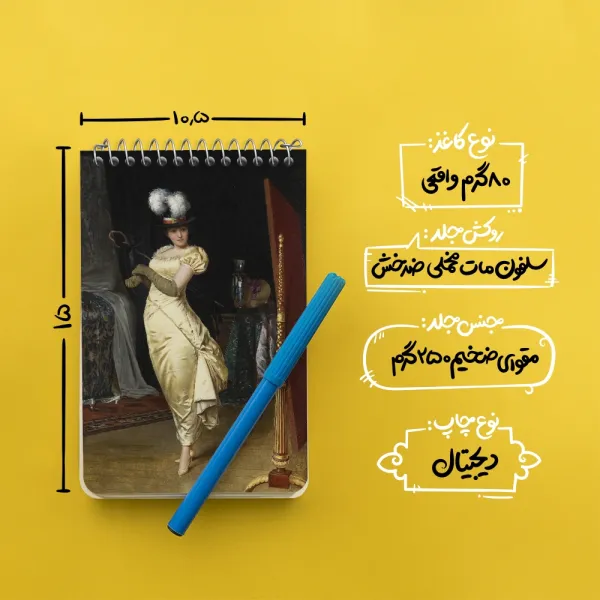 برند خندالو در زمینه تولید انواع دفاتر فانتزی و تحصیلی فعالیت میکند که به دلیل جذابیت ظاهری و طرح های متنوع طرفداران زیادی دارد. دفتر یادداشت خندالو طرح نقاشی آماده شدن برای باله اثر فردریک سولاکروا محصولی مناسب برای همه عاشقان لوازم التحریر است و همچنین همه کسانی که بنا به موقعیت تحصیل یا شغلشان با دفتر و نوشت افزار زیاد سر و کار دارند. در تولید دفتر یادداشت خندالو طرح نقاشی آماده شدن برای باله اثر فردریک سولاکروا از نوع صحافی فنر مارپیچ استفاده شده که در این نوع صحافی برگهها به راحتی چرخیده و یا بیرون آورده می شوند. دفتر های خندالو دارای جلد انعطاف پذیر از جنس مقوای گلاسه 250 گرم با روکش سلفون مات مخملی است که به شما امکان میدهد از دفتر خود بدون اینکه نگرانی از شکستن یا خراب شدن جلد را داشته باشید استفاده کنید و همچنین در این دفاتر از کاغذ 80 گرم با کیفیت استفاده شده که باعث میشود هنگام نوشتن به خوبی جوهر قلم بر روی صفحه نشسته و از خط خوردگیها جلوگیری کند. دفتر یادداشت خندالو با جنس و دوام مناسب، برگه های کاملاً سفید و خطوط طوسی دقیق را داراست که انسان را به نوشتن منظم و زیبا ترغیب میکند. طراحی کاملاً مناسب این دفاتر، به همراه کیفیت بالا، از آن یک محصول مورد علاقه و قابل اعتماد برای همه مقاطع تحصیلی میسازد. دفتر یادداشت خندالو طرح نقاشی آماده شدن برای باله اثر فردریک سولاکروا انتخابی هوشمندانه و مناسب برای افرادی است که به دنبال دفتری با کیفیت و کاربرد عالی هستند. این دفتر، همراه خوبی برای شما در تمام مراحل تحصیل و کار خواهد بود و تجربهای لذتبخش از نوشتن و آموختن را به شما هدیه میدهد.