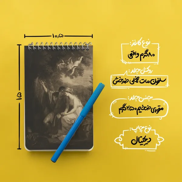برند خندالو در زمینه تولید انواع دفاتر فانتزی و تحصیلی فعالیت میکند که به دلیل جذابیت ظاهری و طرح های متنوع طرفداران زیادی دارد. دفتر یادداشت خندالو طرح نقاشی آنجلیکا و مدورو اثر بنجامین وست محصولی مناسب برای همه عاشقان لوازم التحریر است و همچنین همه کسانی که بنا به موقعیت تحصیل یا شغلشان با دفتر و نوشت افزار زیاد سر و کار دارند. در تولید دفتر یادداشت خندالو طرح نقاشی آنجلیکا و مدورو اثر بنجامین وست از نوع صحافی فنر مارپیچ استفاده شده که در این نوع صحافی برگهها به راحتی چرخیده و یا بیرون آورده می شوند. دفتر های خندالو دارای جلد انعطاف پذیر از جنس مقوای گلاسه 250 گرم با روکش سلفون مات مخملی است که به شما امکان میدهد از دفتر خود بدون اینکه نگرانی از شکستن یا خراب شدن جلد را داشته باشید استفاده کنید و همچنین در این دفاتر از کاغذ 80 گرم با کیفیت استفاده شده که باعث میشود هنگام نوشتن به خوبی جوهر قلم بر روی صفحه نشسته و از خط خوردگیها جلوگیری کند. دفتر یادداشت خندالو با جنس و دوام مناسب، برگه های کاملاً سفید و خطوط طوسی دقیق را داراست که انسان را به نوشتن منظم و زیبا ترغیب میکند. طراحی کاملاً مناسب این دفاتر، به همراه کیفیت بالا، از آن یک محصول مورد علاقه و قابل اعتماد برای همه مقاطع تحصیلی میسازد. دفتر یادداشت خندالو طرح نقاشی آنجلیکا و مدورو اثر بنجامین وست انتخابی هوشمندانه و مناسب برای افرادی است که به دنبال دفتری با کیفیت و کاربرد عالی هستند. این دفتر، همراه خوبی برای شما در تمام مراحل تحصیل و کار خواهد بود و تجربهای لذتبخش از نوشتن و آموختن را به شما هدیه میدهد.