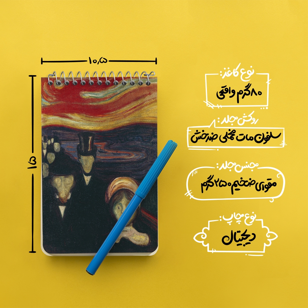 برند خندالو در زمینه تولید انواع دفاتر فانتزی و تحصیلی فعالیت میکند که به دلیل جذابیت ظاهری و طرح های متنوع طرفداران زیادی دارد. دفتر یادداشت خندالو طرح نقاشی اضطراب ادوارد مونک محصولی مناسب برای همه عاشقان لوازم التحریر است و همچنین همه کسانی که بنا به موقعیت تحصیل یا شغلشان با دفتر و نوشت افزار زیاد سر و کار دارند. در تولید دفتر یادداشت خندالو طرح نقاشی اضطراب ادوارد مونک از نوع صحافی فنر مارپیچ استفاده شده که در این نوع صحافی برگهها به راحتی چرخیده و یا بیرون آورده می شوند. دفتر های خندالو دارای جلد انعطاف پذیر از جنس مقوای گلاسه 250 گرم با روکش سلفون مات مخملی است که به شما امکان میدهد از دفتر خود بدون اینکه نگرانی از شکستن یا خراب شدن جلد را داشته باشید استفاده کنید و همچنین در این دفاتر از کاغذ 80 گرم با کیفیت استفاده شده که باعث میشود هنگام نوشتن به خوبی جوهر قلم بر روی صفحه نشسته و از خط خوردگیها جلوگیری کند. دفتر یادداشت خندالو با جنس و دوام مناسب، برگه های کاملاً سفید و خطوط طوسی دقیق را داراست که انسان را به نوشتن منظم و زیبا ترغیب میکند. طراحی کاملاً مناسب این دفاتر، به همراه کیفیت بالا، از آن یک محصول مورد علاقه و قابل اعتماد برای همه مقاطع تحصیلی میسازد. دفتر یادداشت خندالو طرح نقاشی اضطراب ادوارد مونک انتخابی هوشمندانه و مناسب برای افرادی است که به دنبال دفتری با کیفیت و کاربرد عالی هستند. این دفتر، همراه خوبی برای شما در تمام مراحل تحصیل و کار خواهد بود و تجربهای لذتبخش از نوشتن و آموختن را به شما هدیه میدهد.