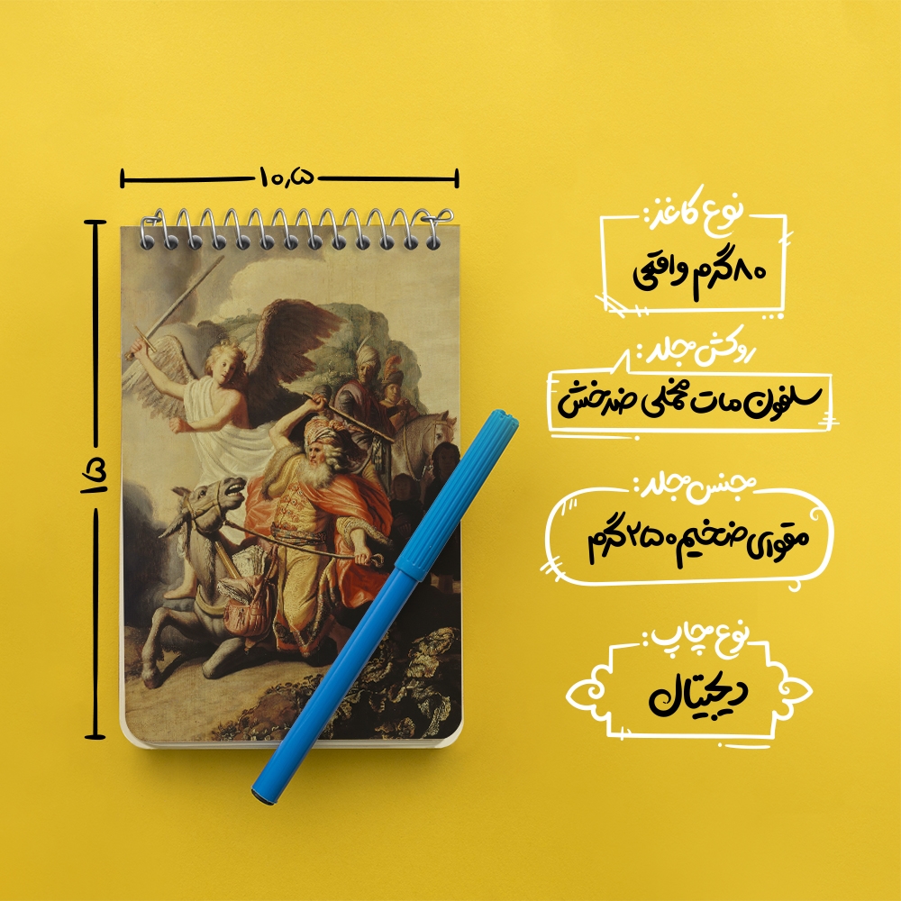 برند خندالو در زمینه تولید انواع دفاتر فانتزی و تحصیلی فعالیت میکند که به دلیل جذابیت ظاهری و طرح های متنوع طرفداران زیادی دارد. دفتر یادداشت خندالو طرح نقاشی الاغ پیامبر بلعم اثر ​​رامبراند محصولی مناسب برای همه عاشقان لوازم التحریر است و همچنین همه کسانی که بنا به موقعیت تحصیل یا شغلشان با دفتر و نوشت افزار زیاد سر و کار دارند. در تولید دفتر یادداشت خندالو طرح نقاشی الاغ پیامبر بلعم اثر ​​رامبراند از نوع صحافی فنر مارپیچ استفاده شده که در این نوع صحافی برگه‌ها به راحتی چرخیده و یا بیرون آورده می شوند.