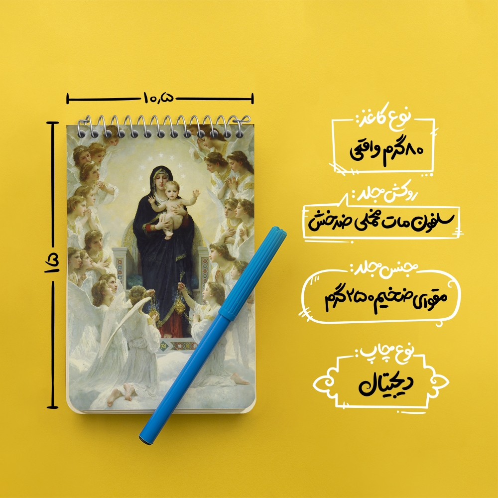 برند خندالو در زمینه تولید انواع دفاتر فانتزی و تحصیلی فعالیت میکند که به دلیل جذابیت ظاهری و طرح های متنوع طرفداران زیادی دارد. دفتر یادداشت خندالو طرح نقاشی باکره با فرشتگان اثر ویلیام بوگرو محصولی مناسب برای همه عاشقان لوازم التحریر است و همچنین همه کسانی که بنا به موقعیت تحصیل یا شغلشان با دفتر و نوشت افزار زیاد سر و کار دارند. در تولید دفتر یادداشت خندالو طرح نقاشی باکره با فرشتگان اثر ویلیام بوگرو از نوع صحافی فنر مارپیچ استفاده شده که در این نوع صحافی برگهها به راحتی چرخیده و یا بیرون آورده می شوند. دفتر های خندالو دارای جلد انعطاف پذیر از جنس مقوای گلاسه 250 گرم با روکش سلفون مات مخملی است که به شما امکان میدهد از دفتر خود بدون اینکه نگرانی از شکستن یا خراب شدن جلد را داشته باشید استفاده کنید و همچنین در این دفاتر از کاغذ 80 گرم با کیفیت استفاده شده که باعث میشود هنگام نوشتن به خوبی جوهر قلم بر روی صفحه نشسته و از خط خوردگیها جلوگیری کند. دفتر یادداشت خندالو با جنس و دوام مناسب، برگه های کاملاً سفید و خطوط طوسی دقیق را داراست که انسان را به نوشتن منظم و زیبا ترغیب میکند. طراحی کاملاً مناسب این دفاتر، به همراه کیفیت بالا، از آن یک محصول مورد علاقه و قابل اعتماد برای همه مقاطع تحصیلی میسازد. دفتر یادداشت خندالو طرح نقاشی باکره با فرشتگان اثر ویلیام بوگرو انتخابی هوشمندانه و مناسب برای افرادی است که به دنبال دفتری با کیفیت و کاربرد عالی هستند. این دفتر، همراه خوبی برای شما در تمام مراحل تحصیل و کار خواهد بود و تجربهای لذتبخش از نوشتن و آموختن را به شما هدیه میدهد.