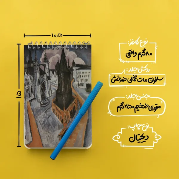 برند خندالو در زمینه تولید انواع دفاتر فانتزی و تحصیلی فعالیت میکند که به دلیل جذابیت ظاهری و طرح های متنوع طرفداران زیادی دارد. دفتر یادداشت خندالو طرح نقاشی برج سرخ در هاله اثر ارنست لودویگ کیرشنر محصولی مناسب برای همه عاشقان لوازم التحریر است و همچنین همه کسانی که بنا به موقعیت تحصیل یا شغلشان با دفتر و نوشت افزار زیاد سر و کار دارند. در تولید دفتر یادداشت خندالو طرح نقاشی برج سرخ در هاله اثر ارنست لودویگ کیرشنر از نوع صحافی فنر مارپیچ استفاده شده که در این نوع صحافی برگهها به راحتی چرخیده و یا بیرون آورده می شوند. دفتر های خندالو دارای جلد انعطاف پذیر از جنس مقوای گلاسه 250 گرم با روکش سلفون مات مخملی است که به شما امکان میدهد از دفتر خود بدون اینکه نگرانی از شکستن یا خراب شدن جلد را داشته باشید استفاده کنید و همچنین در این دفاتر از کاغذ 80 گرم با کیفیت استفاده شده که باعث میشود هنگام نوشتن به خوبی جوهر قلم بر روی صفحه نشسته و از خط خوردگیها جلوگیری کند. دفتر یادداشت خندالو با جنس و دوام مناسب، برگه های کاملاً سفید و خطوط طوسی دقیق را داراست که انسان را به نوشتن منظم و زیبا ترغیب میکند. طراحی کاملاً مناسب این دفاتر، به همراه کیفیت بالا، از آن یک محصول مورد علاقه و قابل اعتماد برای همه مقاطع تحصیلی میسازد. دفتر یادداشت خندالو طرح نقاشی برج سرخ در هاله اثر ارنست لودویگ کیرشنر انتخابی هوشمندانه و مناسب برای افرادی است که به دنبال دفتری با کیفیت و کاربرد عالی هستند. این دفتر، همراه خوبی برای شما در تمام مراحل تحصیل و کار خواهد بود و تجربهای لذتبخش از نوشتن و آموختن را به شما هدیه میدهد.