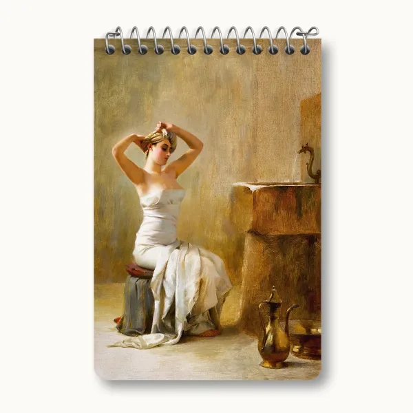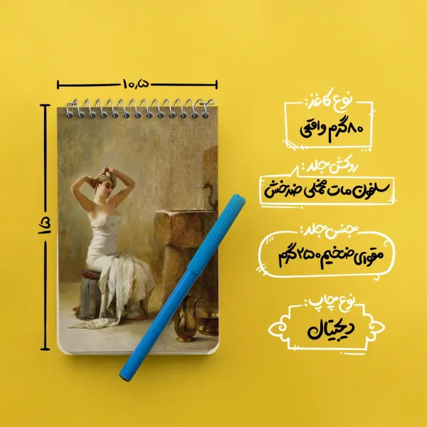 برند خندالو در زمینه تولید انواع دفاتر فانتزی و تحصیلی فعالیت میکند که به دلیل جذابیت ظاهری و طرح های متنوع طرفداران زیادی دارد. دفتر یادداشت خندالو طرح نقاشی بعد از حمام اثر تئودوروس رالی محصولی مناسب برای همه عاشقان لوازم التحریر است و همچنین همه کسانی که بنا به موقعیت تحصیل یا شغلشان با دفتر و نوشت افزار زیاد سر و کار دارند. در تولید دفتر یادداشت خندالو طرح نقاشی بعد از حمام اثر تئودوروس رالی از نوع صحافی فنر مارپیچ استفاده شده که در این نوع صحافی برگهها به راحتی چرخیده و یا بیرون آورده می شوند. دفتر های خندالو دارای جلد انعطاف پذیر از جنس مقوای گلاسه 250 گرم با روکش سلفون مات مخملی است که به شما امکان میدهد از دفتر خود بدون اینکه نگرانی از شکستن یا خراب شدن جلد را داشته باشید استفاده کنید و همچنین در این دفاتر از کاغذ 80 گرم با کیفیت استفاده شده که باعث میشود هنگام نوشتن به خوبی جوهر قلم بر روی صفحه نشسته و از خط خوردگیها جلوگیری کند. دفتر یادداشت خندالو با جنس و دوام مناسب، برگه های کاملاً سفید و خطوط طوسی دقیق را داراست که انسان را به نوشتن منظم و زیبا ترغیب میکند. طراحی کاملاً مناسب این دفاتر، به همراه کیفیت بالا، از آن یک محصول مورد علاقه و قابل اعتماد برای همه مقاطع تحصیلی میسازد. دفتر یادداشت خندالو طرح نقاشی بعد از حمام اثر تئودوروس رالی انتخابی هوشمندانه و مناسب برای افرادی است که به دنبال دفتری با کیفیت و کاربرد عالی هستند. این دفتر، همراه خوبی برای شما در تمام مراحل تحصیل و کار خواهد بود و تجربهای لذتبخش از نوشتن و آموختن را به شما هدیه میدهد.