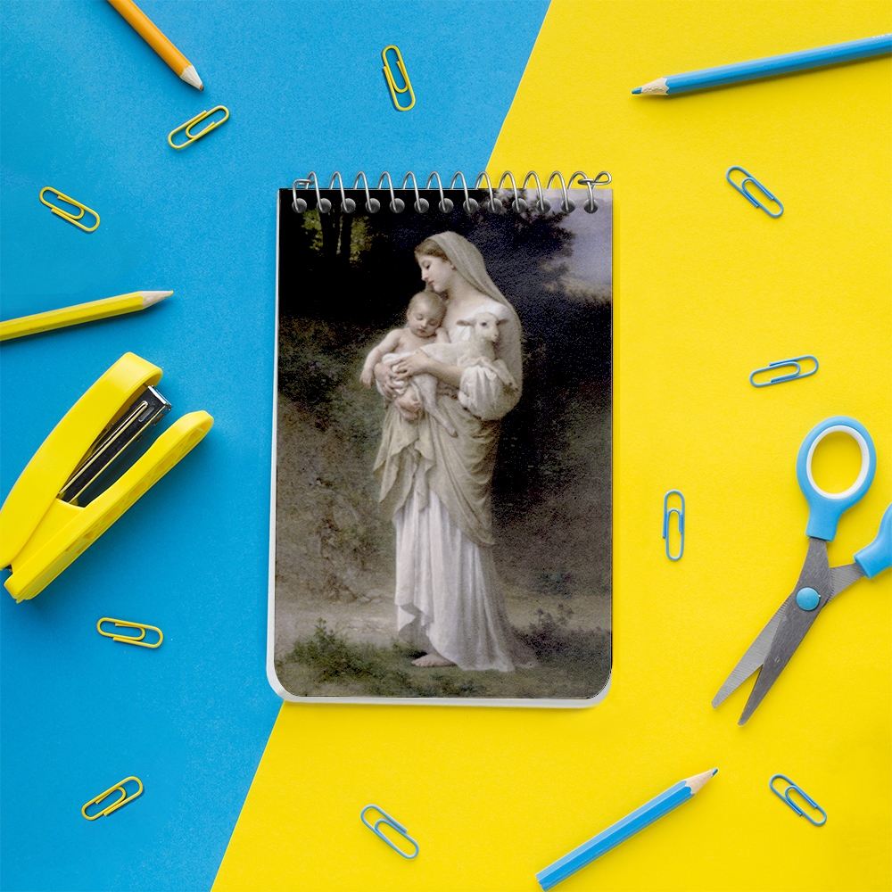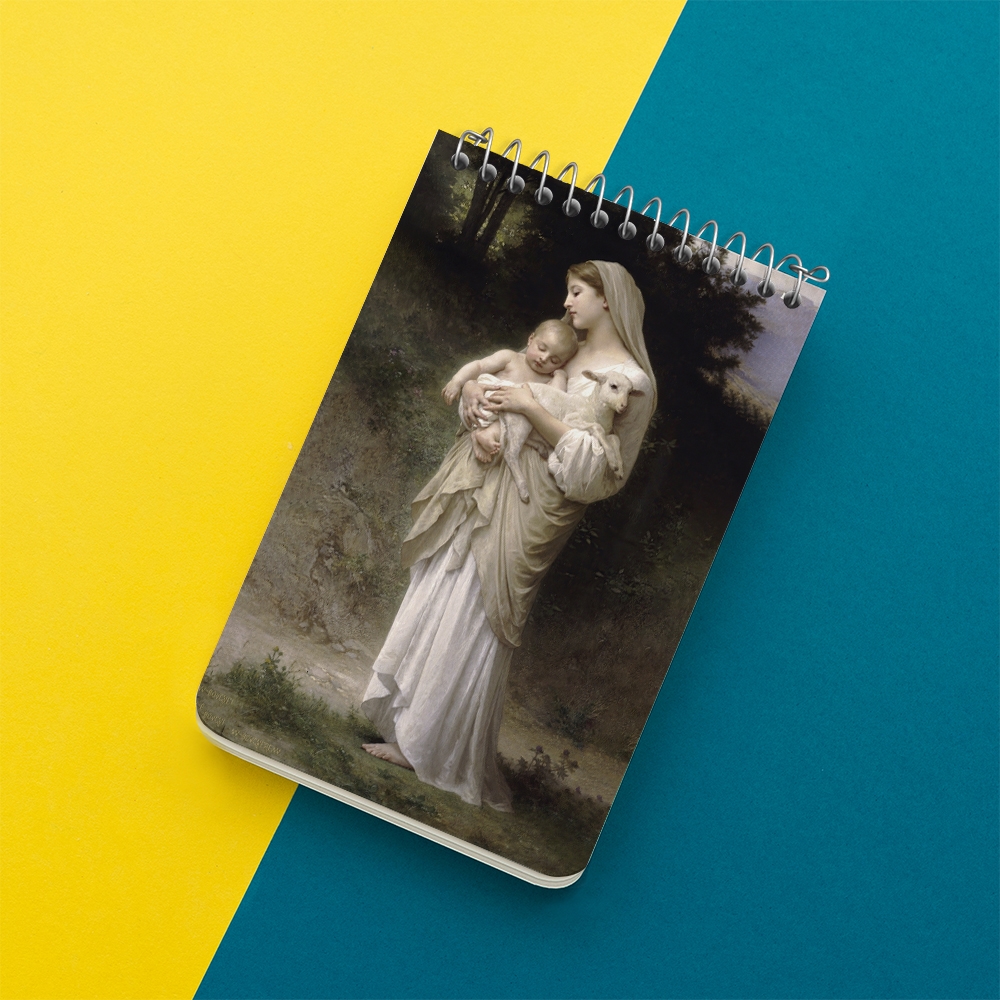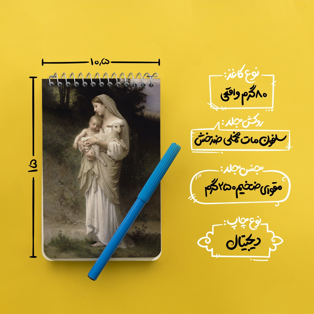 برند خندالو در زمینه تولید انواع دفاتر فانتزی و تحصیلی فعالیت میکند که به دلیل جذابیت ظاهری و طرح های متنوع طرفداران زیادی دارد. دفتر یادداشت خندالو طرح نقاشی بی گناهی اثر ویلیام بوگرو محصولی مناسب برای همه عاشقان لوازم التحریر است و همچنین همه کسانی که بنا به موقعیت تحصیل یا شغلشان با دفتر و نوشت افزار زیاد سر و کار دارند. در تولید دفتر یادداشت خندالو طرح نقاشی بی گناهی اثر ویلیام بوگرو از نوع صحافی فنر مارپیچ استفاده شده که در این نوع صحافی برگهها به راحتی چرخیده و یا بیرون آورده می شوند. دفتر های خندالو دارای جلد انعطاف پذیر از جنس مقوای گلاسه 250 گرم با روکش سلفون مات مخملی است که به شما امکان میدهد از دفتر خود بدون اینکه نگرانی از شکستن یا خراب شدن جلد را داشته باشید استفاده کنید و همچنین در این دفاتر از کاغذ 80 گرم با کیفیت استفاده شده که باعث میشود هنگام نوشتن به خوبی جوهر قلم بر روی صفحه نشسته و از خط خوردگیها جلوگیری کند. دفتر یادداشت خندالو با جنس و دوام مناسب، برگه های کاملاً سفید و خطوط طوسی دقیق را داراست که انسان را به نوشتن منظم و زیبا ترغیب میکند. طراحی کاملاً مناسب این دفاتر، به همراه کیفیت بالا، از آن یک محصول مورد علاقه و قابل اعتماد برای همه مقاطع تحصیلی میسازد. دفتر یادداشت خندالو طرح نقاشی بی گناهی اثر ویلیام بوگرو انتخابی هوشمندانه و مناسب برای افرادی است که به دنبال دفتری با کیفیت و کاربرد عالی هستند. این دفتر، همراه خوبی برای شما در تمام مراحل تحصیل و کار خواهد بود و تجربهای لذتبخش از نوشتن و آموختن را به شما هدیه میدهد.