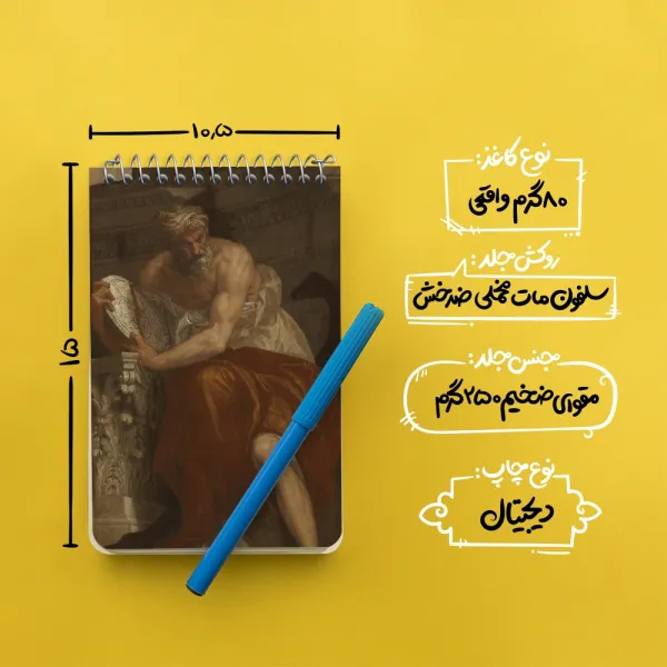 برند خندالو در زمینه تولید انواع دفاتر فانتزی و تحصیلی فعالیت میکند که به دلیل جذابیت ظاهری و طرح های متنوع طرفداران زیادی دارد. دفتر یادداشت خندالو طرح نقاشی تمثیل جهت یابی با اسطرلاب اثر پائولو ورونزه محصولی مناسب برای همه عاشقان لوازم التحریر است و همچنین همه کسانی که بنا به موقعیت تحصیل یا شغلشان با دفتر و نوشت افزار زیاد سر و کار دارند. در تولید دفتر یادداشت خندالو طرح نقاشی تمثیل جهت یابی با اسطرلاب اثر پائولو ورونزه از نوع صحافی فنر مارپیچ استفاده شده که در این نوع صحافی برگهها به راحتی چرخیده و یا بیرون آورده می شوند. دفتر های خندالو دارای جلد انعطاف پذیر از جنس مقوای گلاسه 250 گرم با روکش سلفون مات مخملی است که به شما امکان میدهد از دفتر خود بدون اینکه نگرانی از شکستن یا خراب شدن جلد را داشته باشید استفاده کنید و همچنین در این دفاتر از کاغذ 80 گرم با کیفیت استفاده شده که باعث میشود هنگام نوشتن به خوبی جوهر قلم بر روی صفحه نشسته و از خط خوردگیها جلوگیری کند. دفتر یادداشت خندالو با جنس و دوام مناسب، برگه های کاملاً سفید و خطوط طوسی دقیق را داراست که انسان را به نوشتن منظم و زیبا ترغیب میکند. طراحی کاملاً مناسب این دفاتر، به همراه کیفیت بالا، از آن یک محصول مورد علاقه و قابل اعتماد برای همه مقاطع تحصیلی میسازد. دفتر یادداشت خندالو طرح نقاشی تمثیل جهت یابی با اسطرلاب اثر پائولو ورونزه انتخابی هوشمندانه و مناسب برای افرادی است که به دنبال دفتری با کیفیت و کاربرد عالی هستند. این دفتر، همراه خوبی برای شما در تمام مراحل تحصیل و کار خواهد بود و تجربهای لذتبخش از نوشتن و آموختن را به شما هدیه میدهد.