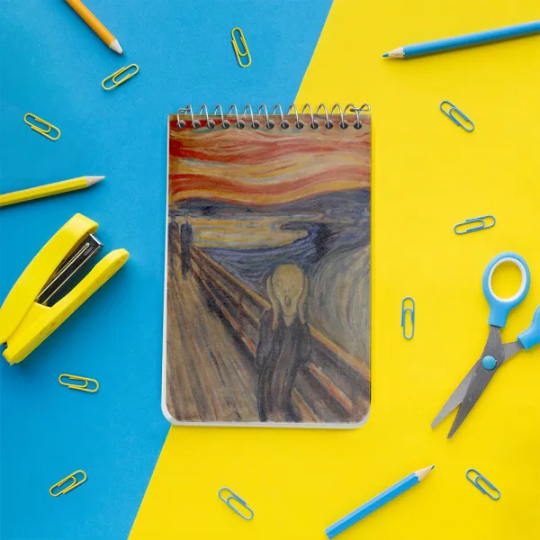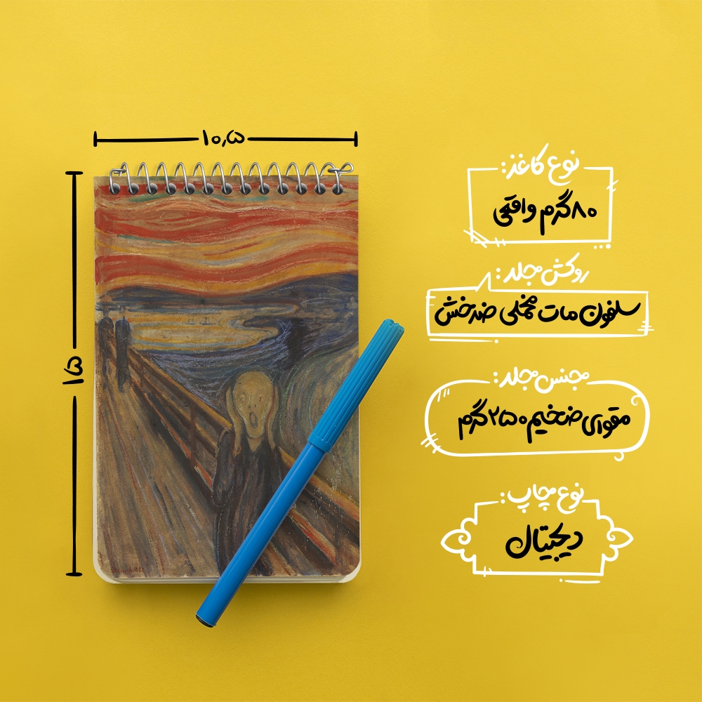 برند خندالو در زمینه تولید انواع دفاتر فانتزی و تحصیلی فعالیت میکند که به دلیل جذابیت ظاهری و طرح های متنوع طرفداران زیادی دارد. دفتر یادداشت خندالو طرح نقاشی جیغ اثر ادوارد مونک محصولی مناسب برای همه عاشقان لوازم التحریر است و همچنین همه کسانی که بنا به موقعیت تحصیل یا شغلشان با دفتر و نوشت افزار زیاد سر و کار دارند. در تولید دفتر یادداشت خندالو طرح نقاشی جیغ اثر ادوارد مونک از نوع صحافی فنر مارپیچ استفاده شده که در این نوع صحافی برگهها به راحتی چرخیده و یا بیرون آورده می شوند. دفتر های خندالو دارای جلد انعطاف پذیر از جنس مقوای گلاسه 250 گرم با روکش سلفون مات مخملی است که به شما امکان میدهد از دفتر خود بدون اینکه نگرانی از شکستن یا خراب شدن جلد را داشته باشید استفاده کنید و همچنین در این دفاتر از کاغذ 80 گرم با کیفیت استفاده شده که باعث میشود هنگام نوشتن به خوبی جوهر قلم بر روی صفحه نشسته و از خط خوردگیها جلوگیری کند. دفتر یادداشت خندالو با جنس و دوام مناسب، برگه های کاملاً سفید و خطوط طوسی دقیق را داراست که انسان را به نوشتن منظم و زیبا ترغیب میکند. طراحی کاملاً مناسب این دفاتر، به همراه کیفیت بالا، از آن یک محصول مورد علاقه و قابل اعتماد برای همه مقاطع تحصیلی میسازد. دفتر یادداشت خندالو طرح نقاشی جیغ اثر ادوارد مونک انتخابی هوشمندانه و مناسب برای افرادی است که به دنبال دفتری با کیفیت و کاربرد عالی هستند. این دفتر، همراه خوبی برای شما در تمام مراحل تحصیل و کار خواهد بود و تجربهای لذتبخش از نوشتن و آموختن را به شما هدیه میدهد.