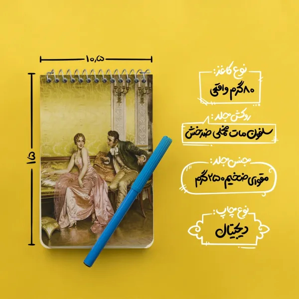برند خندالو در زمینه تولید انواع دفاتر فانتزی و تحصیلی فعالیت میکند که به دلیل جذابیت ظاهری و طرح های متنوع طرفداران زیادی دارد. دفتر یادداشت خندالو طرح نقاشی خواستگاری اثر فردریک سولاکروا محصولی مناسب برای همه عاشقان لوازم التحریر است و همچنین همه کسانی که بنا به موقعیت تحصیل یا شغلشان با دفتر و نوشت افزار زیاد سر و کار دارند. در تولید دفتر یادداشت خندالو طرح نقاشی خواستگاری اثر فردریک سولاکروا از نوع صحافی فنر مارپیچ استفاده شده که در این نوع صحافی برگهها به راحتی چرخیده و یا بیرون آورده می شوند. دفتر های خندالو دارای جلد انعطاف پذیر از جنس مقوای گلاسه 250 گرم با روکش سلفون مات مخملی است که به شما امکان میدهد از دفتر خود بدون اینکه نگرانی از شکستن یا خراب شدن جلد را داشته باشید استفاده کنید و همچنین در این دفاتر از کاغذ 80 گرم با کیفیت استفاده شده که باعث میشود هنگام نوشتن به خوبی جوهر قلم بر روی صفحه نشسته و از خط خوردگیها جلوگیری کند. دفتر یادداشت خندالو با جنس و دوام مناسب، برگه های کاملاً سفید و خطوط طوسی دقیق را داراست که انسان را به نوشتن منظم و زیبا ترغیب میکند. طراحی کاملاً مناسب این دفاتر، به همراه کیفیت بالا، از آن یک محصول مورد علاقه و قابل اعتماد برای همه مقاطع تحصیلی میسازد. دفتر یادداشت خندالو طرح نقاشی خواستگاری اثر فردریک سولاکروا انتخابی هوشمندانه و مناسب برای افرادی است که به دنبال دفتری با کیفیت و کاربرد عالی هستند. این دفتر، همراه خوبی برای شما در تمام مراحل تحصیل و کار خواهد بود و تجربهای لذتبخش از نوشتن و آموختن را به شما هدیه میدهد.