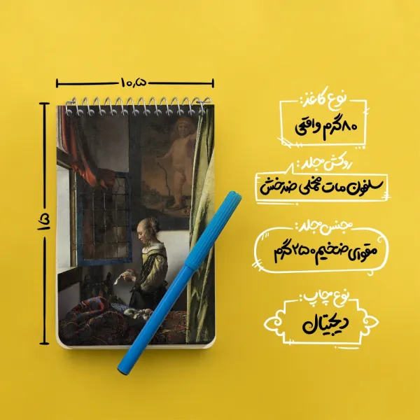 برند خندالو در زمینه تولید انواع دفاتر فانتزی و تحصیلی فعالیت میکند که به دلیل جذابیت ظاهری و طرح های متنوع طرفداران زیادی دارد. دفتر یادداشت خندالو طرح نقاشی دختری در حال خواندن نامه اثر یوهانس فرمیر محصولی مناسب برای همه عاشقان لوازم التحریر است و همچنین همه کسانی که بنا به موقعیت تحصیل یا شغلشان با دفتر و نوشت افزار زیاد سر و کار دارند. در تولید دفتر یادداشت خندالو طرح نقاشی دختری در حال خواندن نامه اثر یوهانس فرمیر از نوع صحافی فنر مارپیچ استفاده شده که در این نوع صحافی برگهها به راحتی چرخیده و یا بیرون آورده می شوند. دفتر های خندالو دارای جلد انعطاف پذیر از جنس مقوای گلاسه 250 گرم با روکش سلفون مات مخملی است که به شما امکان میدهد از دفتر خود بدون اینکه نگرانی از شکستن یا خراب شدن جلد را داشته باشید استفاده کنید و همچنین در این دفاتر از کاغذ 80 گرم با کیفیت استفاده شده که باعث میشود هنگام نوشتن به خوبی جوهر قلم بر روی صفحه نشسته و از خط خوردگیها جلوگیری کند. دفتر یادداشت خندالو با جنس و دوام مناسب، برگه های کاملاً سفید و خطوط طوسی دقیق را داراست که انسان را به نوشتن منظم و زیبا ترغیب میکند. طراحی کاملاً مناسب این دفاتر، به همراه کیفیت بالا، از آن یک محصول مورد علاقه و قابل اعتماد برای همه مقاطع تحصیلی میسازد. دفتر یادداشت خندالو طرح نقاشی دختری در حال خواندن نامه اثر یوهانس فرمیر انتخابی هوشمندانه و مناسب برای افرادی است که به دنبال دفتری با کیفیت و کاربرد عالی هستند. این دفتر، همراه خوبی برای شما در تمام مراحل تحصیل و کار خواهد بود و تجربهای لذتبخش از نوشتن و آموختن را به شما هدیه میدهد.