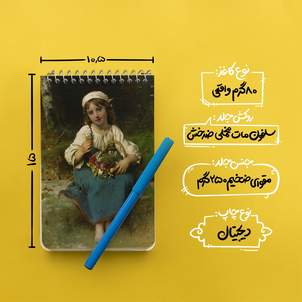 برند خندالو در زمینه تولید انواع دفاتر فانتزی و تحصیلی فعالیت میکند که به دلیل جذابیت ظاهری و طرح های متنوع طرفداران زیادی دارد. دفتر یادداشت خندالو طرح نقاشی دختر جوان با یک سبد گل اثر لئون ژان باسیل پررو محصولی مناسب برای همه عاشقان لوازم التحریر است و همچنین همه کسانی که بنا به موقعیت تحصیل یا شغلشان با دفتر و نوشت افزار زیاد سر و کار دارند. در تولید دفتر یادداشت خندالو طرح نقاشی دختر جوان با یک سبد گل اثر لئون ژان باسیل پررو از نوع صحافی فنر مارپیچ استفاده شده که در این نوع صحافی برگهها به راحتی چرخیده و یا بیرون آورده می شوند. دفتر های خندالو دارای جلد انعطاف پذیر از جنس مقوای گلاسه 250 گرم با روکش سلفون مات مخملی است که به شما امکان میدهد از دفتر خود بدون اینکه نگرانی از شکستن یا خراب شدن جلد را داشته باشید استفاده کنید و همچنین در این دفاتر از کاغذ 80 گرم با کیفیت استفاده شده که باعث میشود هنگام نوشتن به خوبی جوهر قلم بر روی صفحه نشسته و از خط خوردگیها جلوگیری کند. دفتر یادداشت خندالو با جنس و دوام مناسب، برگه های کاملاً سفید و خطوط طوسی دقیق را داراست که انسان را به نوشتن منظم و زیبا ترغیب میکند. طراحی کاملاً مناسب این دفاتر، به همراه کیفیت بالا، از آن یک محصول مورد علاقه و قابل اعتماد برای همه مقاطع تحصیلی میسازد. دفتر یادداشت خندالو طرح نقاشی دختر جوان با یک سبد گل اثر لئون ژان باسیل پررو انتخابی هوشمندانه و مناسب برای افرادی است که به دنبال دفتری با کیفیت و کاربرد عالی هستند. این دفتر، همراه خوبی برای شما در تمام مراحل تحصیل و کار خواهد بود و تجربهای لذتبخش از نوشتن و آموختن را به شما هدیه میدهد.
