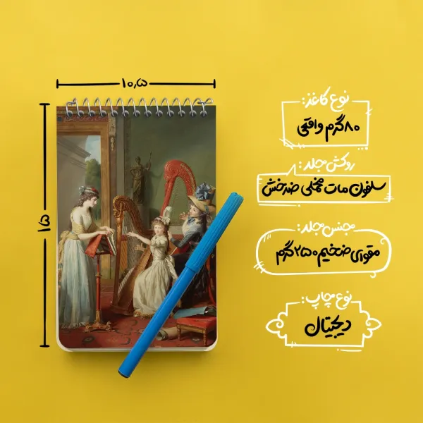 برند خندالو در زمینه تولید انواع دفاتر فانتزی و تحصیلی فعالیت میکند که به دلیل جذابیت ظاهری و طرح های متنوع طرفداران زیادی دارد. دفتر یادداشت خندالو طرح نقاشی درس هارپ اثر ژان آنتوان تئودور ژیروس محصولی مناسب برای همه عاشقان لوازم التحریر است و همچنین همه کسانی که بنا به موقعیت تحصیل یا شغلشان با دفتر و نوشت افزار زیاد سر و کار دارند. در تولید دفتر یادداشت خندالو طرح نقاشی درس هارپ اثر ژان آنتوان تئودور ژیروس از نوع صحافی فنر مارپیچ استفاده شده که در این نوع صحافی برگهها به راحتی چرخیده و یا بیرون آورده می شوند. دفتر های خندالو دارای جلد انعطاف پذیر از جنس مقوای گلاسه 250 گرم با روکش سلفون مات مخملی است که به شما امکان میدهد از دفتر خود بدون اینکه نگرانی از شکستن یا خراب شدن جلد را داشته باشید استفاده کنید و همچنین در این دفاتر از کاغذ 80 گرم با کیفیت استفاده شده که باعث میشود هنگام نوشتن به خوبی جوهر قلم بر روی صفحه نشسته و از خط خوردگیها جلوگیری کند. دفتر یادداشت خندالو با جنس و دوام مناسب، برگه های کاملاً سفید و خطوط طوسی دقیق را داراست که انسان را به نوشتن منظم و زیبا ترغیب میکند. طراحی کاملاً مناسب این دفاتر، به همراه کیفیت بالا، از آن یک محصول مورد علاقه و قابل اعتماد برای همه مقاطع تحصیلی میسازد. دفتر یادداشت خندالو طرح نقاشی درس هارپ اثر ژان آنتوان تئودور ژیروس انتخابی هوشمندانه و مناسب برای افرادی است که به دنبال دفتری با کیفیت و کاربرد عالی هستند. این دفتر، همراه خوبی برای شما در تمام مراحل تحصیل و کار خواهد بود و تجربهای لذتبخش از نوشتن و آموختن را به شما هدیه میدهد.