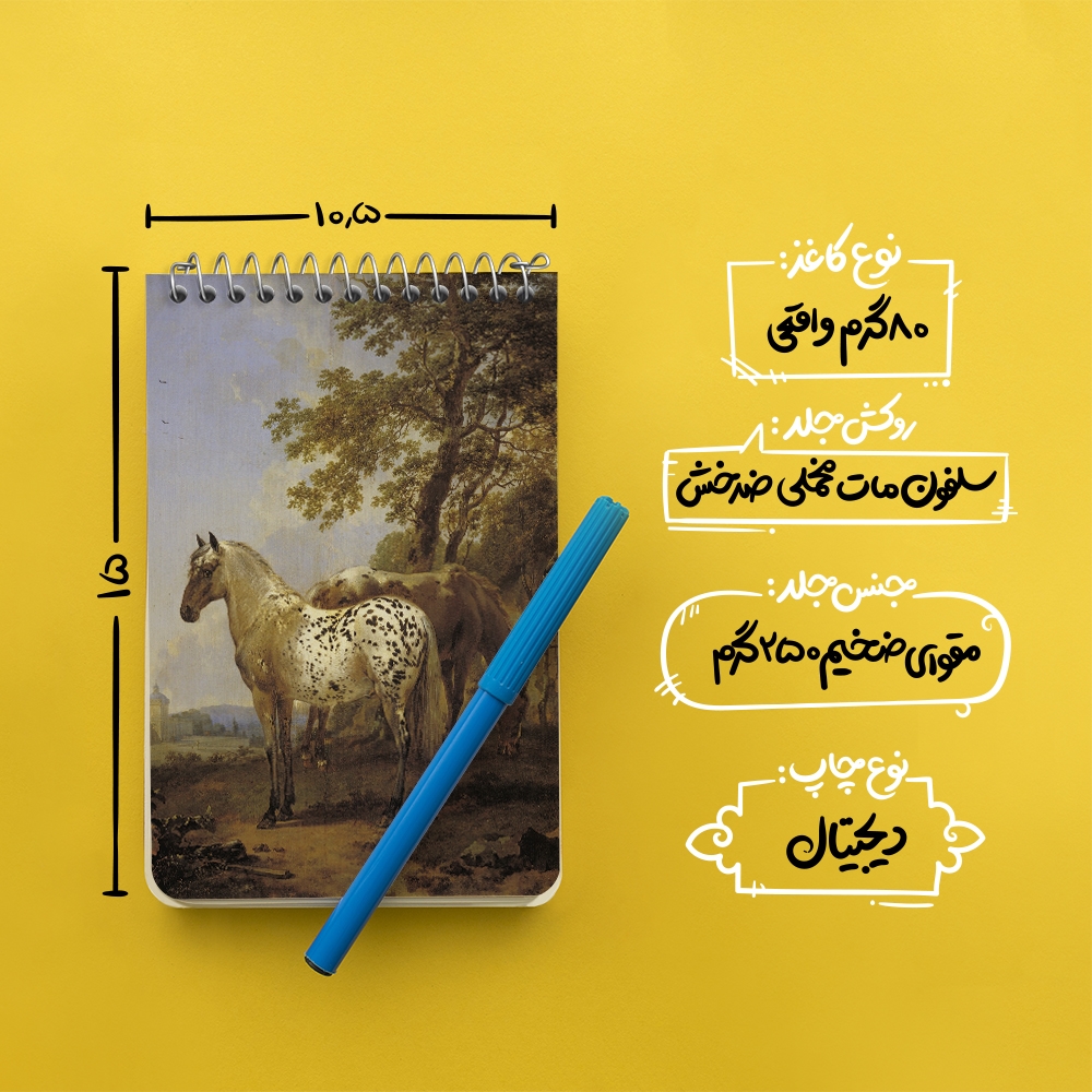 برند خندالو در زمینه تولید انواع دفاتر فانتزی و تحصیلی فعالیت میکند که به دلیل جذابیت ظاهری و طرح های متنوع طرفداران زیادی دارد. دفتر یادداشت خندالو طرح نقاشی دو اسب در یک منظره اثر نیکلاس پیترز برچم محصولی مناسب برای همه عاشقان لوازم التحریر است و همچنین همه کسانی که بنا به موقعیت تحصیل یا شغلشان با دفتر و نوشت افزار زیاد سر و کار دارند. در تولید دفتر یادداشت خندالو طرح نقاشی دو اسب در یک منظره اثر نیکلاس پیترز برچم از نوع صحافی فنر مارپیچ استفاده شده که در این نوع صحافی برگهها به راحتی چرخیده و یا بیرون آورده می شوند. دفتر های خندالو دارای جلد انعطاف پذیر از جنس مقوای گلاسه 250 گرم با روکش سلفون مات مخملی است که به شما امکان میدهد از دفتر خود بدون اینکه نگرانی از شکستن یا خراب شدن جلد را داشته باشید استفاده کنید و همچنین در این دفاتر از کاغذ 80 گرم با کیفیت استفاده شده که باعث میشود هنگام نوشتن به خوبی جوهر قلم بر روی صفحه نشسته و از خط خوردگیها جلوگیری کند. دفتر یادداشت خندالو با جنس و دوام مناسب، برگه های کاملاً سفید و خطوط طوسی دقیق را داراست که انسان را به نوشتن منظم و زیبا ترغیب میکند. طراحی کاملاً مناسب این دفاتر، به همراه کیفیت بالا، از آن یک محصول مورد علاقه و قابل اعتماد برای همه مقاطع تحصیلی میسازد. دفتر یادداشت خندالو طرح نقاشی دو اسب در یک منظره اثر نیکلاس پیترز برچم انتخابی هوشمندانه و مناسب برای افرادی است که به دنبال دفتری با کیفیت و کاربرد عالی هستند. این دفتر، همراه خوبی برای شما در تمام مراحل تحصیل و کار خواهد بود و تجربهای لذتبخش از نوشتن و آموختن را به شما هدیه میدهد.