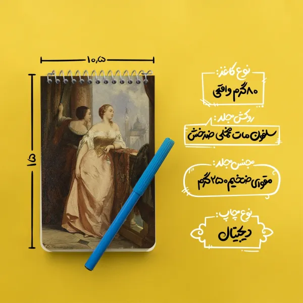 برند خندالو در زمینه تولید انواع دفاتر فانتزی و تحصیلی فعالیت میکند که به دلیل جذابیت ظاهری و طرح های متنوع طرفداران زیادی دارد. دفتر یادداشت خندالو طرح نقاشی دو خانم در بالکن در پس زمینه ونیز اثر ادوارد هامان محصولی مناسب برای همه عاشقان لوازم التحریر است و همچنین همه کسانی که بنا به موقعیت تحصیل یا شغلشان با دفتر و نوشت افزار زیاد سر و کار دارند. در تولید دفتر یادداشت خندالو طرح نقاشی دو خانم در بالکن در پس زمینه ونیز اثر ادوارد هامان از نوع صحافی فنر مارپیچ استفاده شده که در این نوع صحافی برگهها به راحتی چرخیده و یا بیرون آورده می شوند. دفتر های خندالو دارای جلد انعطاف پذیر از جنس مقوای گلاسه 250 گرم با روکش سلفون مات مخملی است که به شما امکان میدهد از دفتر خود بدون اینکه نگرانی از شکستن یا خراب شدن جلد را داشته باشید استفاده کنید و همچنین در این دفاتر از کاغذ 80 گرم با کیفیت استفاده شده که باعث میشود هنگام نوشتن به خوبی جوهر قلم بر روی صفحه نشسته و از خط خوردگیها جلوگیری کند. دفتر یادداشت خندالو با جنس و دوام مناسب، برگه های کاملاً سفید و خطوط طوسی دقیق را داراست که انسان را به نوشتن منظم و زیبا ترغیب میکند. طراحی کاملاً مناسب این دفاتر، به همراه کیفیت بالا، از آن یک محصول مورد علاقه و قابل اعتماد برای همه مقاطع تحصیلی میسازد. دفتر یادداشت خندالو طرح نقاشی دو خانم در بالکن در پس زمینه ونیز اثر ادوارد هامان انتخابی هوشمندانه و مناسب برای افرادی است که به دنبال دفتری با کیفیت و کاربرد عالی هستند. این دفتر، همراه خوبی برای شما در تمام مراحل تحصیل و کار خواهد بود و تجربهای لذتبخش از نوشتن و آموختن را به شما هدیه میدهد.
