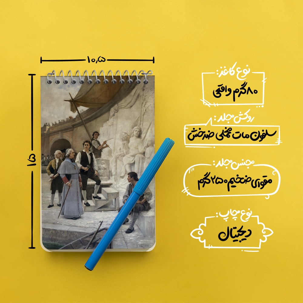 برند خندالو در زمینه تولید انواع دفاتر فانتزی و تحصیلی فعالیت میکند که به دلیل جذابیت ظاهری و طرح های متنوع طرفداران زیادی دارد. دفتر یادداشت خندالو طرح نقاشی دیدار از مجسمه ساز اثر ادوارد برنارد دبات پونسان محصولی مناسب برای همه عاشقان لوازم التحریر است و همچنین همه کسانی که بنا به موقعیت تحصیل یا شغلشان با دفتر و نوشت افزار زیاد سر و کار دارند. در تولید دفتر یادداشت خندالو طرح نقاشی دیدار از مجسمه ساز اثر ادوارد برنارد دبات پونسان از نوع صحافی فنر مارپیچ استفاده شده که در این نوع صحافی برگهها به راحتی چرخیده و یا بیرون آورده می شوند. دفتر های خندالو دارای جلد انعطاف پذیر از جنس مقوای گلاسه 250 گرم با روکش سلفون مات مخملی است که به شما امکان میدهد از دفتر خود بدون اینکه نگرانی از شکستن یا خراب شدن جلد را داشته باشید استفاده کنید و همچنین در این دفاتر از کاغذ 80 گرم با کیفیت استفاده شده که باعث میشود هنگام نوشتن به خوبی جوهر قلم بر روی صفحه نشسته و از خط خوردگیها جلوگیری کند. دفتر یادداشت خندالو با جنس و دوام مناسب، برگه های کاملاً سفید و خطوط طوسی دقیق را داراست که انسان را به نوشتن منظم و زیبا ترغیب میکند. طراحی کاملاً مناسب این دفاتر، به همراه کیفیت بالا، از آن یک محصول مورد علاقه و قابل اعتماد برای همه مقاطع تحصیلی میسازد. دفتر یادداشت خندالو طرح نقاشی دیدار از مجسمه ساز اثر ادوارد برنارد دبات پونسان انتخابی هوشمندانه و مناسب برای افرادی است که به دنبال دفتری با کیفیت و کاربرد عالی هستند. این دفتر، همراه خوبی برای شما در تمام مراحل تحصیل و کار خواهد بود و تجربهای لذتبخش از نوشتن و آموختن را به شما هدیه میدهد.