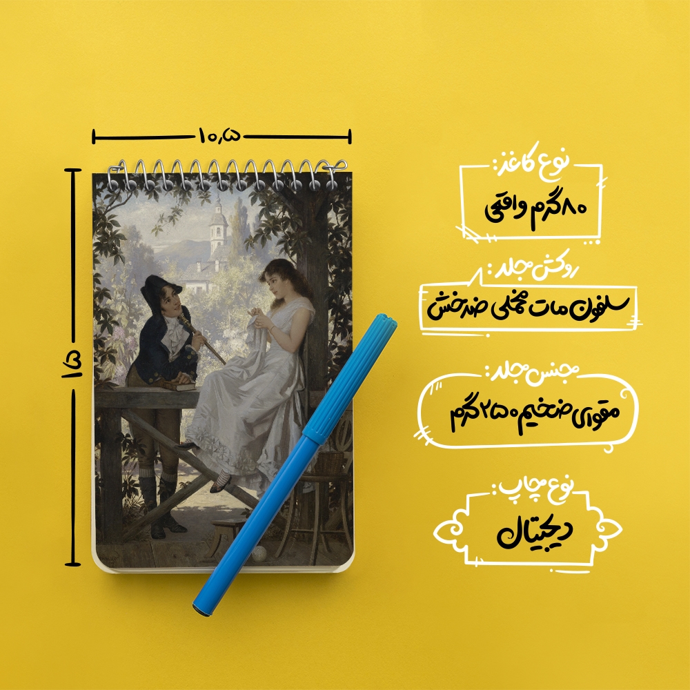 برند خندالو در زمینه تولید انواع دفاتر فانتزی و تحصیلی فعالیت میکند که به دلیل جذابیت ظاهری و طرح های متنوع طرفداران زیادی دارد. دفتر یادداشت خندالو طرح نقاشی دیدار عاشقانه اثر کارل شونینگر جوان محصولی مناسب برای همه عاشقان لوازم التحریر است و همچنین همه کسانی که بنا به موقعیت تحصیل یا شغلشان با دفتر و نوشت افزار زیاد سر و کار دارند. در تولید دفتر یادداشت خندالو طرح نقاشی دیدار عاشقانه اثر کارل شونینگر جوان از نوع صحافی فنر مارپیچ استفاده شده که در این نوع صحافی برگهها به راحتی چرخیده و یا بیرون آورده می شوند. دفتر های خندالو دارای جلد انعطاف پذیر از جنس مقوای گلاسه 250 گرم با روکش سلفون مات مخملی است که به شما امکان میدهد از دفتر خود بدون اینکه نگرانی از شکستن یا خراب شدن جلد را داشته باشید استفاده کنید و همچنین در این دفاتر از کاغذ 80 گرم با کیفیت استفاده شده که باعث میشود هنگام نوشتن به خوبی جوهر قلم بر روی صفحه نشسته و از خط خوردگیها جلوگیری کند. دفتر یادداشت خندالو با جنس و دوام مناسب، برگه های کاملاً سفید و خطوط طوسی دقیق را داراست که انسان را به نوشتن منظم و زیبا ترغیب میکند. طراحی کاملاً مناسب این دفاتر، به همراه کیفیت بالا، از آن یک محصول مورد علاقه و قابل اعتماد برای همه مقاطع تحصیلی میسازد. دفتر یادداشت خندالو طرح نقاشی دیدار عاشقانه اثر کارل شونینگر جوان انتخابی هوشمندانه و مناسب برای افرادی است که به دنبال دفتری با کیفیت و کاربرد عالی هستند. این دفتر، همراه خوبی برای شما در تمام مراحل تحصیل و کار خواهد بود و تجربهای لذتبخش از نوشتن و آموختن را به شما هدیه میدهد.