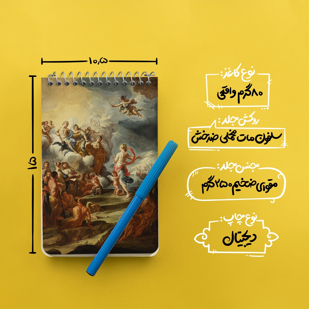 برند خندالو در زمینه تولید انواع دفاتر فانتزی و تحصیلی فعالیت میکند که به دلیل جذابیت ظاهری و طرح های متنوع طرفداران زیادی دارد. دفتر یادداشت خندالو طرح نقاشی زهره از طرف ناوگان تروا اثر دایره کورادو جیاکینتو محصولی مناسب برای همه عاشقان لوازم التحریر است و همچنین همه کسانی که بنا به موقعیت تحصیل یا شغلشان با دفتر و نوشت افزار زیاد سر و کار دارند. در تولید دفتر یادداشت خندالو طرح نقاشی زهره از طرف ناوگان تروا اثر دایره کورادو جیاکینتو از نوع صحافی فنر مارپیچ استفاده شده که در این نوع صحافی برگهها به راحتی چرخیده و یا بیرون آورده می شوند. دفتر های خندالو دارای جلد انعطاف پذیر از جنس مقوای گلاسه 250 گرم با روکش سلفون مات مخملی است که به شما امکان میدهد از دفتر خود بدون اینکه نگرانی از شکستن یا خراب شدن جلد را داشته باشید استفاده کنید و همچنین در این دفاتر از کاغذ 80 گرم با کیفیت استفاده شده که باعث میشود هنگام نوشتن به خوبی جوهر قلم بر روی صفحه نشسته و از خط خوردگیها جلوگیری کند. دفتر یادداشت خندالو با جنس و دوام مناسب، برگه های کاملاً سفید و خطوط طوسی دقیق را داراست که انسان را به نوشتن منظم و زیبا ترغیب میکند. طراحی کاملاً مناسب این دفاتر، به همراه کیفیت بالا، از آن یک محصول مورد علاقه و قابل اعتماد برای همه مقاطع تحصیلی میسازد. دفتر یادداشت خندالو طرح نقاشی زهره از طرف ناوگان تروا اثر دایره کورادو جیاکینتو انتخابی هوشمندانه و مناسب برای افرادی است که به دنبال دفتری با کیفیت و کاربرد عالی هستند. این دفتر، همراه خوبی برای شما در تمام مراحل تحصیل و کار خواهد بود و تجربهای لذتبخش از نوشتن و آموختن را به شما هدیه میدهد.
