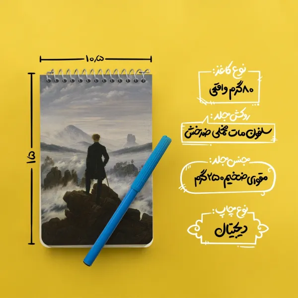 برند خندالو در زمینه تولید انواع دفاتر فانتزی و تحصیلی فعالیت میکند که به دلیل جذابیت ظاهری و طرح های متنوع طرفداران زیادی دارد. دفتر یادداشت خندالو طرح نقاشی سرگردان بر فراز دریای مه اثر کاسپار دیوید فردریش محصولی مناسب برای همه عاشقان لوازم التحریر است و همچنین همه کسانی که بنا به موقعیت تحصیل یا شغلشان با دفتر و نوشت افزار زیاد سر و کار دارند. در تولید دفتر یادداشت خندالو طرح نقاشی سرگردان بر فراز دریای مه اثر کاسپار دیوید فردریش از نوع صحافی فنر مارپیچ استفاده شده که در این نوع صحافی برگهها به راحتی چرخیده و یا بیرون آورده می شوند. دفتر های خندالو دارای جلد انعطاف پذیر از جنس مقوای گلاسه 250 گرم با روکش سلفون مات مخملی است که به شما امکان میدهد از دفتر خود بدون اینکه نگرانی از شکستن یا خراب شدن جلد را داشته باشید استفاده کنید و همچنین در این دفاتر از کاغذ 80 گرم با کیفیت استفاده شده که باعث میشود هنگام نوشتن به خوبی جوهر قلم بر روی صفحه نشسته و از خط خوردگیها جلوگیری کند. دفتر یادداشت خندالو با جنس و دوام مناسب، برگه های کاملاً سفید و خطوط طوسی دقیق را داراست که انسان را به نوشتن منظم و زیبا ترغیب میکند. طراحی کاملاً مناسب این دفاتر، به همراه کیفیت بالا، از آن یک محصول مورد علاقه و قابل اعتماد برای همه مقاطع تحصیلی میسازد. دفتر یادداشت خندالو طرح نقاشی سرگردان بر فراز دریای مه اثر کاسپار دیوید فردریش انتخابی هوشمندانه و مناسب برای افرادی است که به دنبال دفتری با کیفیت و کاربرد عالی هستند. این دفتر، همراه خوبی برای شما در تمام مراحل تحصیل و کار خواهد بود و تجربهای لذتبخش از نوشتن و آموختن را به شما هدیه میدهد.