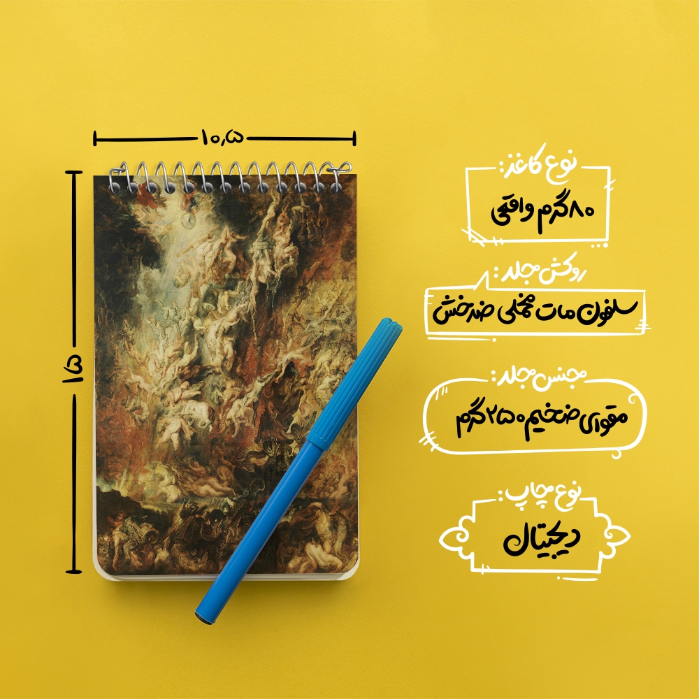 برند خندالو در زمینه تولید انواع دفاتر فانتزی و تحصیلی فعالیت میکند که به دلیل جذابیت ظاهری و طرح های متنوع طرفداران زیادی دارد. دفتر یادداشت خندالو طرح نقاشی سقوط نفرین شدگان اثر پیتر پل روبنس محصولی مناسب برای همه عاشقان لوازم التحریر است و همچنین همه کسانی که بنا به موقعیت تحصیل یا شغلشان با دفتر و نوشت افزار زیاد سر و کار دارند. در تولید دفتر یادداشت خندالو طرح نقاشی سقوط نفرین شدگان اثر پیتر پل روبنس از نوع صحافی فنر مارپیچ استفاده شده که در این نوع صحافی برگهها به راحتی چرخیده و یا بیرون آورده می شوند. دفتر های خندالو دارای جلد انعطاف پذیر از جنس مقوای گلاسه 250 گرم با روکش سلفون مات مخملی است که به شما امکان میدهد از دفتر خود بدون اینکه نگرانی از شکستن یا خراب شدن جلد را داشته باشید استفاده کنید و همچنین در این دفاتر از کاغذ 80 گرم با کیفیت استفاده شده که باعث میشود هنگام نوشتن به خوبی جوهر قلم بر روی صفحه نشسته و از خط خوردگیها جلوگیری کند. دفتر یادداشت خندالو با جنس و دوام مناسب، برگه های کاملاً سفید و خطوط طوسی دقیق را داراست که انسان را به نوشتن منظم و زیبا ترغیب میکند. طراحی کاملاً مناسب این دفاتر، به همراه کیفیت بالا، از آن یک محصول مورد علاقه و قابل اعتماد برای همه مقاطع تحصیلی میسازد. دفتر یادداشت خندالو طرح نقاشی سقوط نفرین شدگان اثر پیتر پل روبنس انتخابی هوشمندانه و مناسب برای افرادی است که به دنبال دفتری با کیفیت و کاربرد عالی هستند. این دفتر، همراه خوبی برای شما در تمام مراحل تحصیل و کار خواهد بود و تجربهای لذتبخش از نوشتن و آموختن را به شما هدیه میدهد.