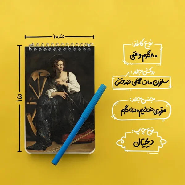برند خندالو در زمینه تولید انواع دفاتر فانتزی و تحصیلی فعالیت میکند که به دلیل جذابیت ظاهری و طرح های متنوع طرفداران زیادی دارد. دفتر یادداشت خندالو طرح نقاشی سنت کاترین اسکندریه اثر کاراواجو محصولی مناسب برای همه عاشقان لوازم التحریر است و همچنین همه کسانی که بنا به موقعیت تحصیل یا شغلشان با دفتر و نوشت افزار زیاد سر و کار دارند. در تولید دفتر یادداشت خندالو طرح نقاشی سنت کاترین اسکندریه اثر کاراواجو از نوع صحافی فنر مارپیچ استفاده شده که در این نوع صحافی برگهها به راحتی چرخیده و یا بیرون آورده می شوند. دفتر های خندالو دارای جلد انعطاف پذیر از جنس مقوای گلاسه 250 گرم با روکش سلفون مات مخملی است که به شما امکان میدهد از دفتر خود بدون اینکه نگرانی از شکستن یا خراب شدن جلد را داشته باشید استفاده کنید و همچنین در این دفاتر از کاغذ 80 گرم با کیفیت استفاده شده که باعث میشود هنگام نوشتن به خوبی جوهر قلم بر روی صفحه نشسته و از خط خوردگیها جلوگیری کند. دفتر یادداشت خندالو با جنس و دوام مناسب، برگه های کاملاً سفید و خطوط طوسی دقیق را داراست که انسان را به نوشتن منظم و زیبا ترغیب میکند. طراحی کاملاً مناسب این دفاتر، به همراه کیفیت بالا، از آن یک محصول مورد علاقه و قابل اعتماد برای همه مقاطع تحصیلی میسازد. دفتر یادداشت خندالو طرح نقاشی سنت کاترین اسکندریه اثر کاراواجو انتخابی هوشمندانه و مناسب برای افرادی است که به دنبال دفتری با کیفیت و کاربرد عالی هستند. این دفتر، همراه خوبی برای شما در تمام مراحل تحصیل و کار خواهد بود و تجربهای لذتبخش از نوشتن و آموختن را به شما هدیه میدهد.