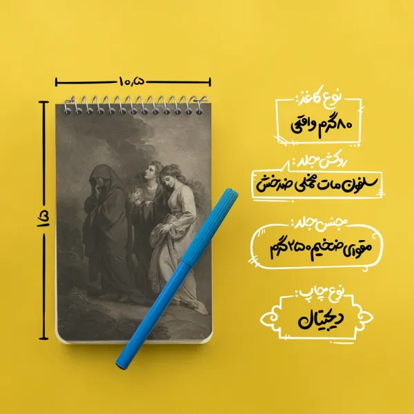 برند خندالو در زمینه تولید انواع دفاتر فانتزی و تحصیلی فعالیت میکند که به دلیل جذابیت ظاهری و طرح های متنوع طرفداران زیادی دارد. دفتر یادداشت خندالو طرح نقاشی سه مریم به گور می روند اثر بنجامین وست محصولی مناسب برای همه عاشقان لوازم التحریر است و همچنین همه کسانی که بنا به موقعیت تحصیل یا شغلشان با دفتر و نوشت افزار زیاد سر و کار دارند. در تولید دفتر یادداشت خندالو طرح نقاشی سه مریم به گور می روند اثر بنجامین وست از نوع صحافی فنر مارپیچ استفاده شده که در این نوع صحافی برگهها به راحتی چرخیده و یا بیرون آورده می شوند. دفتر های خندالو دارای جلد انعطاف پذیر از جنس مقوای گلاسه 250 گرم با روکش سلفون مات مخملی است که به شما امکان میدهد از دفتر خود بدون اینکه نگرانی از شکستن یا خراب شدن جلد را داشته باشید استفاده کنید و همچنین در این دفاتر از کاغذ 80 گرم با کیفیت استفاده شده که باعث میشود هنگام نوشتن به خوبی جوهر قلم بر روی صفحه نشسته و از خط خوردگیها جلوگیری کند. دفتر یادداشت خندالو با جنس و دوام مناسب، برگه های کاملاً سفید و خطوط طوسی دقیق را داراست که انسان را به نوشتن منظم و زیبا ترغیب میکند. طراحی کاملاً مناسب این دفاتر، به همراه کیفیت بالا، از آن یک محصول مورد علاقه و قابل اعتماد برای همه مقاطع تحصیلی میسازد. دفتر یادداشت خندالو طرح نقاشی سه مریم به گور می روند اثر بنجامین وست انتخابی هوشمندانه و مناسب برای افرادی است که به دنبال دفتری با کیفیت و کاربرد عالی هستند. این دفتر، همراه خوبی برای شما در تمام مراحل تحصیل و کار خواهد بود و تجربهای لذتبخش از نوشتن و آموختن را به شما هدیه میدهد.