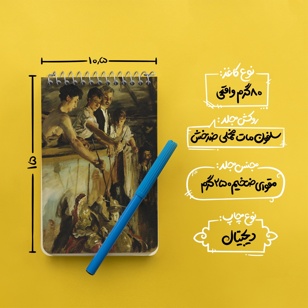 برند خندالو در زمینه تولید انواع دفاتر فانتزی و تحصیلی فعالیت میکند که به دلیل جذابیت ظاهری و طرح های متنوع طرفداران زیادی دارد. دفتر یادداشت خندالو طرح نقاشی عروسکهای خیمه شب بازی اثر جان سینگر سارجنت محصولی مناسب برای همه عاشقان لوازم التحریر است و همچنین همه کسانی که بنا به موقعیت تحصیل یا شغلشان با دفتر و نوشت افزار زیاد سر و کار دارند. در تولید دفتر یادداشت خندالو طرح نقاشی عروسکهای خیمه شب بازی اثر جان سینگر سارجنت از نوع صحافی فنر مارپیچ استفاده شده که در این نوع صحافی برگهها به راحتی چرخیده و یا بیرون آورده می شوند. دفتر های خندالو دارای جلد انعطاف پذیر از جنس مقوای گلاسه 250 گرم با روکش سلفون مات مخملی است که به شما امکان میدهد از دفتر خود بدون اینکه نگرانی از شکستن یا خراب شدن جلد را داشته باشید استفاده کنید و همچنین در این دفاتر از کاغذ 80 گرم با کیفیت استفاده شده که باعث میشود هنگام نوشتن به خوبی جوهر قلم بر روی صفحه نشسته و از خط خوردگیها جلوگیری کند. دفتر یادداشت خندالو با جنس و دوام مناسب، برگه های کاملاً سفید و خطوط طوسی دقیق را داراست که انسان را به نوشتن منظم و زیبا ترغیب میکند. طراحی کاملاً مناسب این دفاتر، به همراه کیفیت بالا، از آن یک محصول مورد علاقه و قابل اعتماد برای همه مقاطع تحصیلی میسازد. دفتر یادداشت خندالو طرح نقاشی عروسکهای خیمه شب بازی اثر جان سینگر سارجنت انتخابی هوشمندانه و مناسب برای افرادی است که به دنبال دفتری با کیفیت و کاربرد عالی هستند. این دفتر، همراه خوبی برای شما در تمام مراحل تحصیل و کار خواهد بود و تجربهای لذتبخش از نوشتن و آموختن را به شما هدیه میدهد.