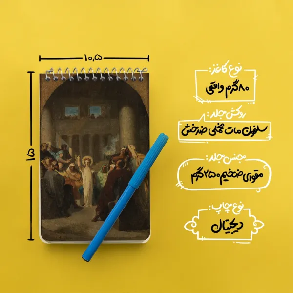 برند خندالو در زمینه تولید انواع دفاتر فانتزی و تحصیلی فعالیت میکند که به دلیل جذابیت ظاهری و طرح های متنوع طرفداران زیادی دارد. دفتر یادداشت خندالو طرح نقاشی عیسی در میان پزشکان اثر فلیکس هانری جاکوموتی محصولی مناسب برای همه عاشقان لوازم التحریر است و همچنین همه کسانی که بنا به موقعیت تحصیل یا شغلشان با دفتر و نوشت افزار زیاد سر و کار دارند. در تولید دفتر یادداشت خندالو طرح نقاشی عیسی در میان پزشکان اثر فلیکس هانری جاکوموتی از نوع صحافی فنر مارپیچ استفاده شده که در این نوع صحافی برگهها به راحتی چرخیده و یا بیرون آورده می شوند. دفتر های خندالو دارای جلد انعطاف پذیر از جنس مقوای گلاسه 250 گرم با روکش سلفون مات مخملی است که به شما امکان میدهد از دفتر خود بدون اینکه نگرانی از شکستن یا خراب شدن جلد را داشته باشید استفاده کنید و همچنین در این دفاتر از کاغذ 80 گرم با کیفیت استفاده شده که باعث میشود هنگام نوشتن به خوبی جوهر قلم بر روی صفحه نشسته و از خط خوردگیها جلوگیری کند. دفتر یادداشت خندالو با جنس و دوام مناسب، برگه های کاملاً سفید و خطوط طوسی دقیق را داراست که انسان را به نوشتن منظم و زیبا ترغیب میکند. طراحی کاملاً مناسب این دفاتر، به همراه کیفیت بالا، از آن یک محصول مورد علاقه و قابل اعتماد برای همه مقاطع تحصیلی میسازد. دفتر یادداشت خندالو طرح نقاشی عیسی در میان پزشکان اثر فلیکس هانری جاکوموتی انتخابی هوشمندانه و مناسب برای افرادی است که به دنبال دفتری با کیفیت و کاربرد عالی هستند. این دفتر، همراه خوبی برای شما در تمام مراحل تحصیل و کار خواهد بود و تجربهای لذتبخش از نوشتن و آموختن را به شما هدیه میدهد.