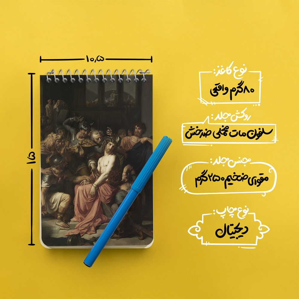 برند خندالو در زمینه تولید انواع دفاتر فانتزی و تحصیلی فعالیت میکند که به دلیل جذابیت ظاهری و طرح های متنوع طرفداران زیادی دارد. دفتر یادداشت خندالو طرح نقاشی عیسی در پراتوریوم اثر الکساندر کابانل محصولی مناسب برای همه عاشقان لوازم التحریر است و همچنین همه کسانی که بنا به موقعیت تحصیل یا شغلشان با دفتر و نوشت افزار زیاد سر و کار دارند. در تولید دفتر یادداشت خندالو طرح نقاشی عیسی در پراتوریوم اثر الکساندر کابانل از نوع صحافی فنر مارپیچ استفاده شده که در این نوع صحافی برگهها به راحتی چرخیده و یا بیرون آورده می شوند. دفتر های خندالو دارای جلد انعطاف پذیر از جنس مقوای گلاسه 250 گرم با روکش سلفون مات مخملی است که به شما امکان میدهد از دفتر خود بدون اینکه نگرانی از شکستن یا خراب شدن جلد را داشته باشید استفاده کنید و همچنین در این دفاتر از کاغذ 80 گرم با کیفیت استفاده شده که باعث میشود هنگام نوشتن به خوبی جوهر قلم بر روی صفحه نشسته و از خط خوردگیها جلوگیری کند. دفتر یادداشت خندالو با جنس و دوام مناسب، برگه های کاملاً سفید و خطوط طوسی دقیق را داراست که انسان را به نوشتن منظم و زیبا ترغیب میکند. طراحی کاملاً مناسب این دفاتر، به همراه کیفیت بالا، از آن یک محصول مورد علاقه و قابل اعتماد برای همه مقاطع تحصیلی میسازد. دفتر یادداشت خندالو طرح نقاشی عیسی در پراتوریوم اثر الکساندر کابانل انتخابی هوشمندانه و مناسب برای افرادی است که به دنبال دفتری با کیفیت و کاربرد عالی هستند. این دفتر، همراه خوبی برای شما در تمام مراحل تحصیل و کار خواهد بود و تجربهای لذتبخش از نوشتن و آموختن را به شما هدیه میدهد.