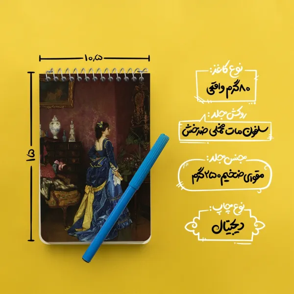برند خندالو در زمینه تولید انواع دفاتر فانتزی و تحصیلی فعالیت میکند که به دلیل جذابیت ظاهری و طرح های متنوع طرفداران زیادی دارد. دفتر یادداشت خندالو طرح نقاشی لباس آبی اثر آگوست تولموش محصولی مناسب برای همه عاشقان لوازم التحریر است و همچنین همه کسانی که بنا به موقعیت تحصیل یا شغلشان با دفتر و نوشت افزار زیاد سر و کار دارند. در تولید دفتر یادداشت خندالو طرح نقاشی لباس آبی اثر آگوست تولموش از نوع صحافی فنر مارپیچ استفاده شده که در این نوع صحافی برگهها به راحتی چرخیده و یا بیرون آورده می شوند. دفتر های خندالو دارای جلد انعطاف پذیر از جنس مقوای گلاسه 250 گرم با روکش سلفون مات مخملی است که به شما امکان میدهد از دفتر خود بدون اینکه نگرانی از شکستن یا خراب شدن جلد را داشته باشید استفاده کنید و همچنین در این دفاتر از کاغذ 80 گرم با کیفیت استفاده شده که باعث میشود هنگام نوشتن به خوبی جوهر قلم بر روی صفحه نشسته و از خط خوردگیها جلوگیری کند. دفتر یادداشت خندالو با جنس و دوام مناسب، برگه های کاملاً سفید و خطوط طوسی دقیق را داراست که انسان را به نوشتن منظم و زیبا ترغیب میکند. طراحی کاملاً مناسب این دفاتر، به همراه کیفیت بالا، از آن یک محصول مورد علاقه و قابل اعتماد برای همه مقاطع تحصیلی میسازد. دفتر یادداشت خندالو طرح نقاشی لباس آبی اثر آگوست تولموش انتخابی هوشمندانه و مناسب برای افرادی است که به دنبال دفتری با کیفیت و کاربرد عالی هستند. این دفتر، همراه خوبی برای شما در تمام مراحل تحصیل و کار خواهد بود و تجربهای لذتبخش از نوشتن و آموختن را به شما هدیه میدهد.