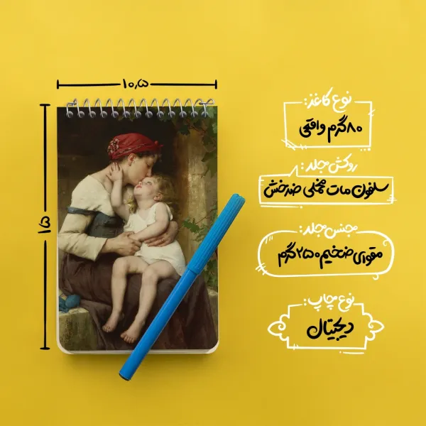 برند خندالو در زمینه تولید انواع دفاتر فانتزی و تحصیلی فعالیت میکند که به دلیل جذابیت ظاهری و طرح های متنوع طرفداران زیادی دارد. دفتر یادداشت خندالو طرح نقاشی مادر با فرزند اثر لئون ژان باسیل پررو محصولی مناسب برای همه عاشقان لوازم التحریر است و همچنین همه کسانی که بنا به موقعیت تحصیل یا شغلشان با دفتر و نوشت افزار زیاد سر و کار دارند. در تولید دفتر یادداشت خندالو طرح نقاشی مادر با فرزند اثر لئون ژان باسیل پررو از نوع صحافی فنر مارپیچ استفاده شده که در این نوع صحافی برگهها به راحتی چرخیده و یا بیرون آورده می شوند. دفتر های خندالو دارای جلد انعطاف پذیر از جنس مقوای گلاسه 250 گرم با روکش سلفون مات مخملی است که به شما امکان میدهد از دفتر خود بدون اینکه نگرانی از شکستن یا خراب شدن جلد را داشته باشید استفاده کنید و همچنین در این دفاتر از کاغذ 80 گرم با کیفیت استفاده شده که باعث میشود هنگام نوشتن به خوبی جوهر قلم بر روی صفحه نشسته و از خط خوردگیها جلوگیری کند. دفتر یادداشت خندالو با جنس و دوام مناسب، برگه های کاملاً سفید و خطوط طوسی دقیق را داراست که انسان را به نوشتن منظم و زیبا ترغیب میکند. طراحی کاملاً مناسب این دفاتر، به همراه کیفیت بالا، از آن یک محصول مورد علاقه و قابل اعتماد برای همه مقاطع تحصیلی میسازد. دفتر یادداشت خندالو طرح نقاشی مادر با فرزند اثر لئون ژان باسیل پررو انتخابی هوشمندانه و مناسب برای افرادی است که به دنبال دفتری با کیفیت و کاربرد عالی هستند. این دفتر، همراه خوبی برای شما در تمام مراحل تحصیل و کار خواهد بود و تجربهای لذتبخش از نوشتن و آموختن را به شما هدیه میدهد.