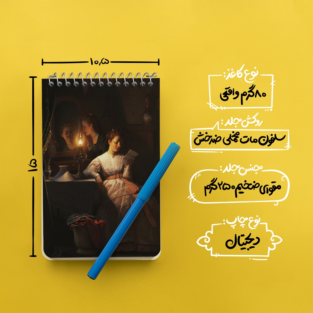 برند خندالو در زمینه تولید انواع دفاتر فانتزی و تحصیلی فعالیت میکند که به دلیل جذابیت ظاهری و طرح های متنوع طرفداران زیادی دارد. دفتر یادداشت خندالو طرح نقاشی نامه عاشقانه اثر پتروس ون شندل محصولی مناسب برای همه عاشقان لوازم التحریر است و همچنین همه کسانی که بنا به موقعیت تحصیل یا شغلشان با دفتر و نوشت افزار زیاد سر و کار دارند. در تولید دفتر یادداشت خندالو طرح نقاشی نامه عاشقانه اثر پتروس ون شندل از نوع صحافی فنر مارپیچ استفاده شده که در این نوع صحافی برگهها به راحتی چرخیده و یا بیرون آورده می شوند. دفتر های خندالو دارای جلد انعطاف پذیر از جنس مقوای گلاسه 250 گرم با روکش سلفون مات مخملی است که به شما امکان میدهد از دفتر خود بدون اینکه نگرانی از شکستن یا خراب شدن جلد را داشته باشید استفاده کنید و همچنین در این دفاتر از کاغذ 80 گرم با کیفیت استفاده شده که باعث میشود هنگام نوشتن به خوبی جوهر قلم بر روی صفحه نشسته و از خط خوردگیها جلوگیری کند. دفتر یادداشت خندالو با جنس و دوام مناسب، برگه های کاملاً سفید و خطوط طوسی دقیق را داراست که انسان را به نوشتن منظم و زیبا ترغیب میکند. طراحی کاملاً مناسب این دفاتر، به همراه کیفیت بالا، از آن یک محصول مورد علاقه و قابل اعتماد برای همه مقاطع تحصیلی میسازد. دفتر یادداشت خندالو طرح نقاشی نامه عاشقانه اثر پتروس ون شندل انتخابی هوشمندانه و مناسب برای افرادی است که به دنبال دفتری با کیفیت و کاربرد عالی هستند. این دفتر، همراه خوبی برای شما در تمام مراحل تحصیل و کار خواهد بود و تجربهای لذتبخش از نوشتن و آموختن را به شما هدیه میدهد.