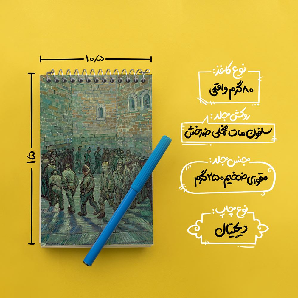 برند خندالو در زمینه تولید انواع دفاتر فانتزی و تحصیلی فعالیت میکند که به دلیل جذابیت ظاهری و طرح های متنوع طرفداران زیادی دارد. دفتر یادداشت خندالو طرح نقاشی هواخوری زندانیان اثر ونسان ونگوگ محصولی مناسب برای همه عاشقان لوازم التحریر است و همچنین همه کسانی که بنا به موقعیت تحصیل یا شغلشان با دفتر و نوشت افزار زیاد سر و کار دارند. در تولید دفتر یادداشت خندالو طرح نقاشی هواخوری زندانیان اثر ونسان ونگوگ از نوع صحافی فنر مارپیچ استفاده شده که در این نوع صحافی برگهها به راحتی چرخیده و یا بیرون آورده می شوند. دفتر های خندالو دارای جلد انعطاف پذیر از جنس مقوای گلاسه 250 گرم با روکش سلفون مات مخملی است که به شما امکان میدهد از دفتر خود بدون اینکه نگرانی از شکستن یا خراب شدن جلد را داشته باشید استفاده کنید و همچنین در این دفاتر از کاغذ 80 گرم با کیفیت استفاده شده که باعث میشود هنگام نوشتن به خوبی جوهر قلم بر روی صفحه نشسته و از خط خوردگیها جلوگیری کند. دفتر یادداشت خندالو با جنس و دوام مناسب، برگه های کاملاً سفید و خطوط طوسی دقیق را داراست که انسان را به نوشتن منظم و زیبا ترغیب میکند. طراحی کاملاً مناسب این دفاتر، به همراه کیفیت بالا، از آن یک محصول مورد علاقه و قابل اعتماد برای همه مقاطع تحصیلی میسازد. دفتر یادداشت خندالو طرح نقاشی هواخوری زندانیان اثر ونسان ونگوگ انتخابی هوشمندانه و مناسب برای افرادی است که به دنبال دفتری با کیفیت و کاربرد عالی هستند. این دفتر، همراه خوبی برای شما در تمام مراحل تحصیل و کار خواهد بود و تجربهای لذتبخش از نوشتن و آموختن را به شما هدیه میدهد.