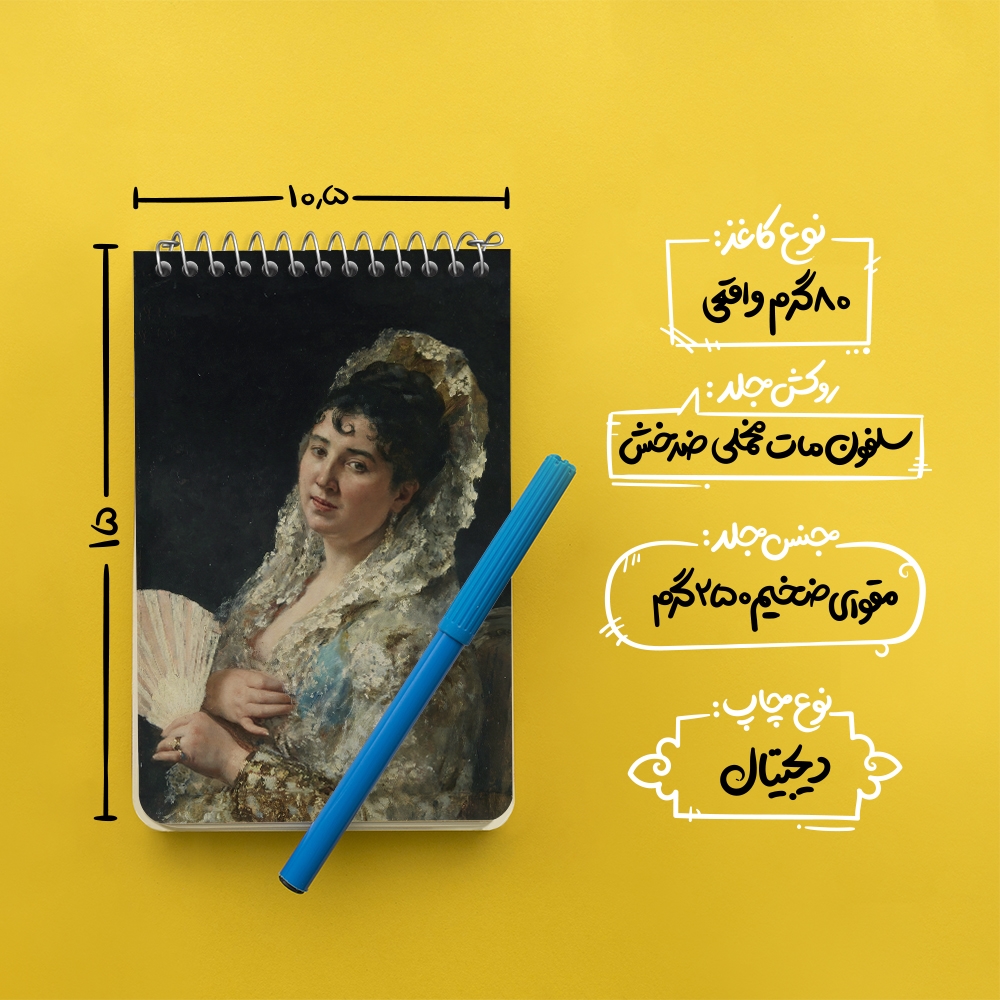 برند خندالو در زمینه تولید انواع دفاتر فانتزی و تحصیلی فعالیت میکند که به دلیل جذابیت ظاهری و طرح های متنوع طرفداران زیادی دارد. دفتر یادداشت خندالو طرح نقاشی پرتره از یک بانوی اسپانیایی اثر ادواردو لئون گاریدو محصولی مناسب برای همه عاشقان لوازم التحریر است و همچنین همه کسانی که بنا به موقعیت تحصیل یا شغلشان با دفتر و نوشت افزار زیاد سر و کار دارند. در تولید دفتر یادداشت خندالو طرح نقاشی پرتره از یک بانوی اسپانیایی اثر ادواردو لئون گاریدو از نوع صحافی فنر مارپیچ استفاده شده که در این نوع صحافی برگهها به راحتی چرخیده و یا بیرون آورده می شوند. دفتر های خندالو دارای جلد انعطاف پذیر از جنس مقوای گلاسه 250 گرم با روکش سلفون مات مخملی است که به شما امکان میدهد از دفتر خود بدون اینکه نگرانی از شکستن یا خراب شدن جلد را داشته باشید استفاده کنید و همچنین در این دفاتر از کاغذ 80 گرم با کیفیت استفاده شده که باعث میشود هنگام نوشتن به خوبی جوهر قلم بر روی صفحه نشسته و از خط خوردگیها جلوگیری کند. دفتر یادداشت خندالو با جنس و دوام مناسب، برگه های کاملاً سفید و خطوط طوسی دقیق را داراست که انسان را به نوشتن منظم و زیبا ترغیب میکند. طراحی کاملاً مناسب این دفاتر، به همراه کیفیت بالا، از آن یک محصول مورد علاقه و قابل اعتماد برای همه مقاطع تحصیلی میسازد. دفتر یادداشت خندالو طرح نقاشی پرتره از یک بانوی اسپانیایی اثر ادواردو لئون گاریدو انتخابی هوشمندانه و مناسب برای افرادی است که به دنبال دفتری با کیفیت و کاربرد عالی هستند. این دفتر، همراه خوبی برای شما در تمام مراحل تحصیل و کار خواهد بود و تجربهای لذتبخش از نوشتن و آموختن را به شما هدیه میدهد.