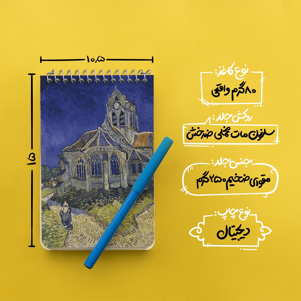 برند خندالو در زمینه تولید انواع دفاتر فانتزی و تحصیلی فعالیت میکند که به دلیل جذابیت ظاهری و طرح های متنوع طرفداران زیادی دارد. دفتر یادداشت خندالو طرح نقاشی کلیسای Auvers-sur-Oise اثر ونسان ونگوگ محصولی مناسب برای همه عاشقان لوازم التحریر است و همچنین همه کسانی که بنا به موقعیت تحصیل یا شغلشان با دفتر و نوشت افزار زیاد سر و کار دارند. در تولید دفتر یادداشت خندالو طرح نقاشی کلیسای Auvers-sur-Oise اثر ونسان ونگوگ از نوع صحافی فنر مارپیچ استفاده شده که در این نوع صحافی برگهها به راحتی چرخیده و یا بیرون آورده می شوند. دفتر های خندالو دارای جلد انعطاف پذیر از جنس مقوای گلاسه 250 گرم با روکش سلفون مات مخملی است که به شما امکان میدهد از دفتر خود بدون اینکه نگرانی از شکستن یا خراب شدن جلد را داشته باشید استفاده کنید و همچنین در این دفاتر از کاغذ 80 گرم با کیفیت استفاده شده که باعث میشود هنگام نوشتن به خوبی جوهر قلم بر روی صفحه نشسته و از خط خوردگیها جلوگیری کند. دفتر یادداشت خندالو با جنس و دوام مناسب، برگه های کاملاً سفید و خطوط طوسی دقیق را داراست که انسان را به نوشتن منظم و زیبا ترغیب میکند. طراحی کاملاً مناسب این دفاتر، به همراه کیفیت بالا، از آن یک محصول مورد علاقه و قابل اعتماد برای همه مقاطع تحصیلی میسازد. دفتر یادداشت خندالو طرح نقاشی کلیسای Auvers-sur-Oise اثر ونسان ونگوگ انتخابی هوشمندانه و مناسب برای افرادی است که به دنبال دفتری با کیفیت و کاربرد عالی هستند. این دفتر، همراه خوبی برای شما در تمام مراحل تحصیل و کار خواهد بود و تجربهای لذتبخش از نوشتن و آموختن را به شما هدیه میدهد.