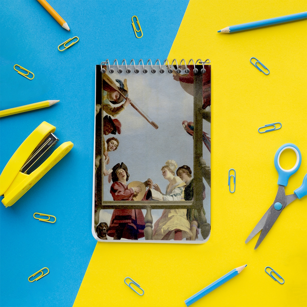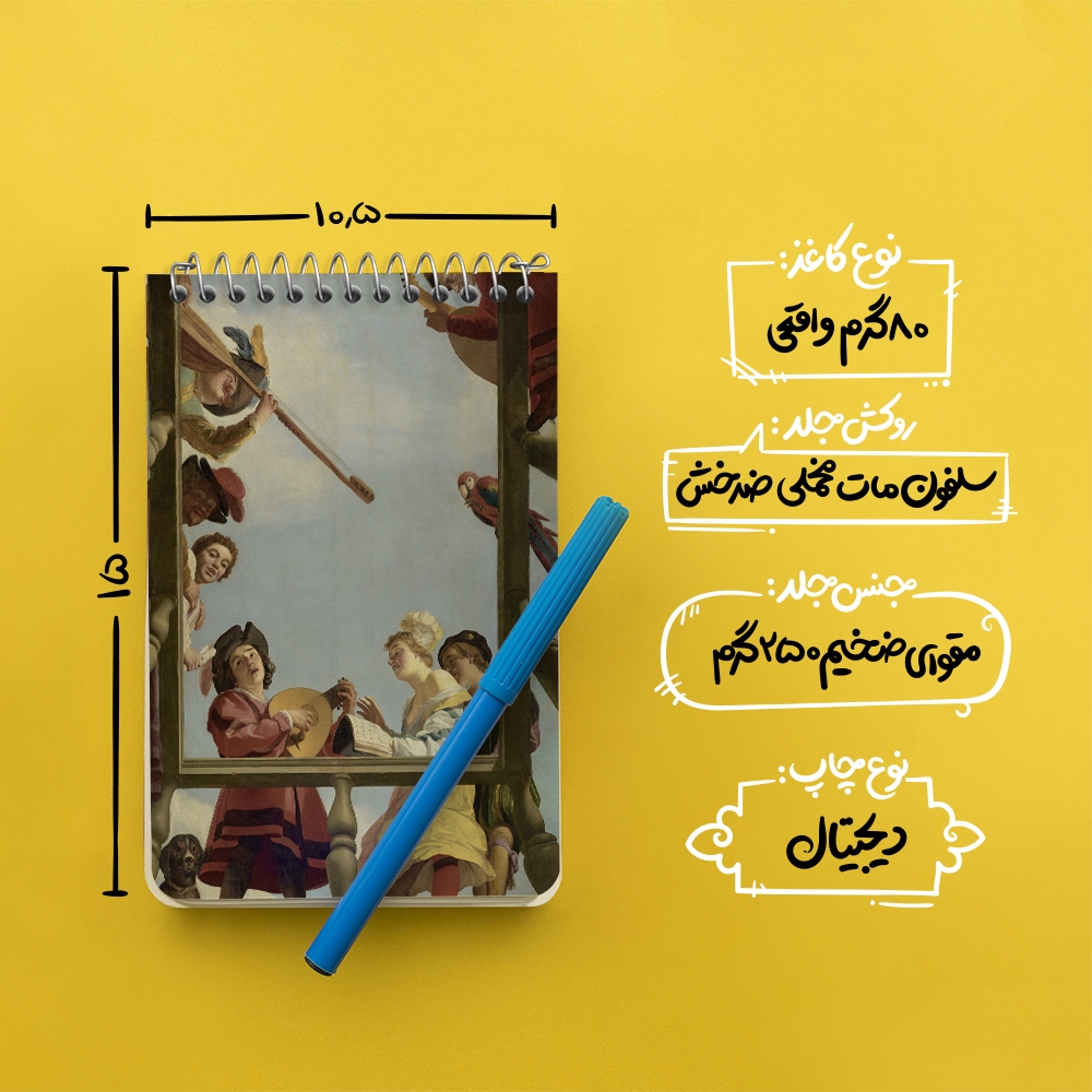 برند خندالو در زمینه تولید انواع دفاتر فانتزی و تحصیلی فعالیت میکند که به دلیل جذابیت ظاهری و طرح های متنوع طرفداران زیادی دارد. دفتر یادداشت خندالو طرح نقاشی گروه موسیقی در بالکن اثر جرارد ون هانتورست محصولی مناسب برای همه عاشقان لوازم التحریر است و همچنین همه کسانی که بنا به موقعیت تحصیل یا شغلشان با دفتر و نوشت افزار زیاد سر و کار دارند. در تولید دفتر یادداشت خندالو طرح نقاشی گروه موسیقی در بالکن اثر جرارد ون هانتورست از نوع صحافی فنر مارپیچ استفاده شده که در این نوع صحافی برگهها به راحتی چرخیده و یا بیرون آورده می شوند. دفتر های خندالو دارای جلد انعطاف پذیر از جنس مقوای گلاسه 250 گرم با روکش سلفون مات مخملی است که به شما امکان میدهد از دفتر خود بدون اینکه نگرانی از شکستن یا خراب شدن جلد را داشته باشید استفاده کنید و همچنین در این دفاتر از کاغذ 80 گرم با کیفیت استفاده شده که باعث میشود هنگام نوشتن به خوبی جوهر قلم بر روی صفحه نشسته و از خط خوردگیها جلوگیری کند. دفتر یادداشت خندالو با جنس و دوام مناسب، برگه های کاملاً سفید و خطوط طوسی دقیق را داراست که انسان را به نوشتن منظم و زیبا ترغیب میکند. طراحی کاملاً مناسب این دفاتر، به همراه کیفیت بالا، از آن یک محصول مورد علاقه و قابل اعتماد برای همه مقاطع تحصیلی میسازد. دفتر یادداشت خندالو طرح نقاشی گروه موسیقی در بالکن اثر جرارد ون هانتورست انتخابی هوشمندانه و مناسب برای افرادی است که به دنبال دفتری با کیفیت و کاربرد عالی هستند. این دفتر، همراه خوبی برای شما در تمام مراحل تحصیل و کار خواهد بود و تجربهای لذتبخش از نوشتن و آموختن را به شما هدیه میدهد.