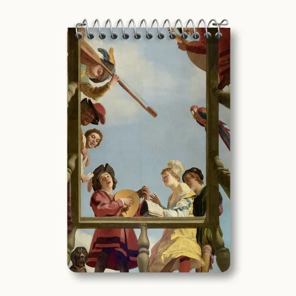 برند خندالو در زمینه تولید انواع دفاتر فانتزی و تحصیلی فعالیت میکند که به دلیل جذابیت ظاهری و طرح های متنوع طرفداران زیادی دارد. دفتر یادداشت خندالو طرح نقاشی گروه موسیقی در بالکن اثر جرارد ون هانتورست محصولی مناسب برای همه عاشقان لوازم التحریر است و همچنین همه کسانی که بنا به موقعیت تحصیل یا شغلشان با دفتر و نوشت افزار زیاد سر و کار دارند. در تولید دفتر یادداشت خندالو طرح نقاشی گروه موسیقی در بالکن اثر جرارد ون هانتورست از نوع صحافی فنر مارپیچ استفاده شده که در این نوع صحافی برگهها به راحتی چرخیده و یا بیرون آورده می شوند. دفتر های خندالو دارای جلد انعطاف پذیر از جنس مقوای گلاسه 250 گرم با روکش سلفون مات مخملی است که به شما امکان میدهد از دفتر خود بدون اینکه نگرانی از شکستن یا خراب شدن جلد را داشته باشید استفاده کنید و همچنین در این دفاتر از کاغذ 80 گرم با کیفیت استفاده شده که باعث میشود هنگام نوشتن به خوبی جوهر قلم بر روی صفحه نشسته و از خط خوردگیها جلوگیری کند. دفتر یادداشت خندالو با جنس و دوام مناسب، برگه های کاملاً سفید و خطوط طوسی دقیق را داراست که انسان را به نوشتن منظم و زیبا ترغیب میکند. طراحی کاملاً مناسب این دفاتر، به همراه کیفیت بالا، از آن یک محصول مورد علاقه و قابل اعتماد برای همه مقاطع تحصیلی میسازد. دفتر یادداشت خندالو طرح نقاشی گروه موسیقی در بالکن اثر جرارد ون هانتورست انتخابی هوشمندانه و مناسب برای افرادی است که به دنبال دفتری با کیفیت و کاربرد عالی هستند. این دفتر، همراه خوبی برای شما در تمام مراحل تحصیل و کار خواهد بود و تجربهای لذتبخش از نوشتن و آموختن را به شما هدیه میدهد.
