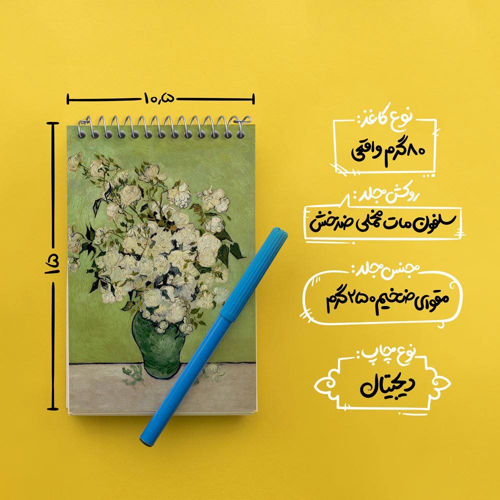 برند خندالو در زمینه تولید انواع دفاتر فانتزی و تحصیلی فعالیت میکند که به دلیل جذابیت ظاهری و طرح های متنوع طرفداران زیادی دارد. دفتر یادداشت خندالو طرح نقاشی گلدان رز اثر ونسان ونگوگ محصولی مناسب برای همه عاشقان لوازم التحریر است و همچنین همه کسانی که بنا به موقعیت تحصیل یا شغلشان با دفتر و نوشت افزار زیاد سر و کار دارند. در تولید دفتر یادداشت خندالو طرح نقاشی گلدان رز اثر ونسان ونگوگ از نوع صحافی فنر مارپیچ استفاده شده که در این نوع صحافی برگهها به راحتی چرخیده و یا بیرون آورده می شوند. دفتر های خندالو دارای جلد انعطاف پذیر از جنس مقوای گلاسه 250 گرم با روکش سلفون مات مخملی است که به شما امکان میدهد از دفتر خود بدون اینکه نگرانی از شکستن یا خراب شدن جلد را داشته باشید استفاده کنید و همچنین در این دفاتر از کاغذ 80 گرم با کیفیت استفاده شده که باعث میشود هنگام نوشتن به خوبی جوهر قلم بر روی صفحه نشسته و از خط خوردگیها جلوگیری کند. دفتر یادداشت خندالو با جنس و دوام مناسب، برگه های کاملاً سفید و خطوط طوسی دقیق را داراست که انسان را به نوشتن منظم و زیبا ترغیب میکند. طراحی کاملاً مناسب این دفاتر، به همراه کیفیت بالا، از آن یک محصول مورد علاقه و قابل اعتماد برای همه مقاطع تحصیلی میسازد. دفتر یادداشت خندالو طرح نقاشی گلدان رز اثر ونسان ونگوگ انتخابی هوشمندانه و مناسب برای افرادی است که به دنبال دفتری با کیفیت و کاربرد عالی هستند. این دفتر، همراه خوبی برای شما در تمام مراحل تحصیل و کار خواهد بود و تجربهای لذتبخش از نوشتن و آموختن را به شما هدیه میدهد.