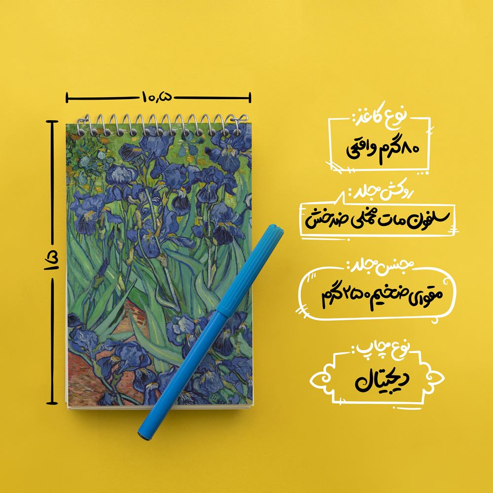 برند خندالو در زمینه تولید انواع دفاتر فانتزی و تحصیلی فعالیت میکند که به دلیل جذابیت ظاهری و طرح های متنوع طرفداران زیادی دارد. دفتر یادداشت خندالو طرح نقاشی گل های زنبق اثر ونسان ونگوگ محصولی مناسب برای همه عاشقان لوازم التحریر است و همچنین همه کسانی که بنا به موقعیت تحصیل یا شغلشان با دفتر و نوشت افزار زیاد سر و کار دارند. در تولید دفتر یادداشت خندالو طرح نقاشی گل های زنبق اثر ونسان ونگوگ از نوع صحافی فنر مارپیچ استفاده شده که در این نوع صحافی برگهها به راحتی چرخیده و یا بیرون آورده می شوند. دفتر های خندالو دارای جلد انعطاف پذیر از جنس مقوای گلاسه 250 گرم با روکش سلفون مات مخملی است که به شما امکان میدهد از دفتر خود بدون اینکه نگرانی از شکستن یا خراب شدن جلد را داشته باشید استفاده کنید و همچنین در این دفاتر از کاغذ 80 گرم با کیفیت استفاده شده که باعث میشود هنگام نوشتن به خوبی جوهر قلم بر روی صفحه نشسته و از خط خوردگیها جلوگیری کند. دفتر یادداشت خندالو با جنس و دوام مناسب، برگه های کاملاً سفید و خطوط طوسی دقیق را داراست که انسان را به نوشتن منظم و زیبا ترغیب میکند. طراحی کاملاً مناسب این دفاتر، به همراه کیفیت بالا، از آن یک محصول مورد علاقه و قابل اعتماد برای همه مقاطع تحصیلی میسازد. دفتر یادداشت خندالو طرح نقاشی گل های زنبق اثر ونسان ونگوگ انتخابی هوشمندانه و مناسب برای افرادی است که به دنبال دفتری با کیفیت و کاربرد عالی هستند. این دفتر، همراه خوبی برای شما در تمام مراحل تحصیل و کار خواهد بود و تجربهای لذتبخش از نوشتن و آموختن را به شما هدیه میدهد.