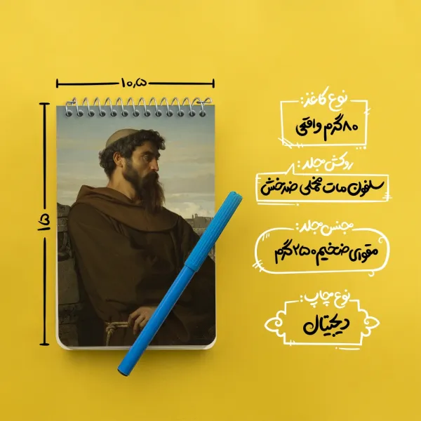 برند خندالو در زمینه تولید انواع دفاتر فانتزی و تحصیلی فعالیت میکند که به دلیل جذابیت ظاهری و طرح های متنوع طرفداران زیادی دارد. دفتر یادداشت خندالو طرح نقاشی یک متفکر، راهب جوان رومی اثر الکساندر کابانل محصولی مناسب برای همه عاشقان لوازم التحریر است و همچنین همه کسانی که بنا به موقعیت تحصیل یا شغلشان با دفتر و نوشت افزار زیاد سر و کار دارند. در تولید دفتر یادداشت خندالو طرح نقاشی یک متفکر، راهب جوان رومی اثر الکساندر کابانل از نوع صحافی فنر مارپیچ استفاده شده که در این نوع صحافی برگهها به راحتی چرخیده و یا بیرون آورده می شوند. دفتر های خندالو دارای جلد انعطاف پذیر از جنس مقوای گلاسه 250 گرم با روکش سلفون مات مخملی است که به شما امکان میدهد از دفتر خود بدون اینکه نگرانی از شکستن یا خراب شدن جلد را داشته باشید استفاده کنید و همچنین در این دفاتر از کاغذ 80 گرم با کیفیت استفاده شده که باعث میشود هنگام نوشتن به خوبی جوهر قلم بر روی صفحه نشسته و از خط خوردگیها جلوگیری کند. دفتر یادداشت خندالو با جنس و دوام مناسب، برگه های کاملاً سفید و خطوط طوسی دقیق را داراست که انسان را به نوشتن منظم و زیبا ترغیب میکند. طراحی کاملاً مناسب این دفاتر، به همراه کیفیت بالا، از آن یک محصول مورد علاقه و قابل اعتماد برای همه مقاطع تحصیلی میسازد. دفتر یادداشت خندالو طرح نقاشی یک متفکر، راهب جوان رومی اثر الکساندر کابانل انتخابی هوشمندانه و مناسب برای افرادی است که به دنبال دفتری با کیفیت و کاربرد عالی هستند. این دفتر، همراه خوبی برای شما در تمام مراحل تحصیل و کار خواهد بود و تجربهای لذتبخش از نوشتن و آموختن را به شما هدیه میدهد.