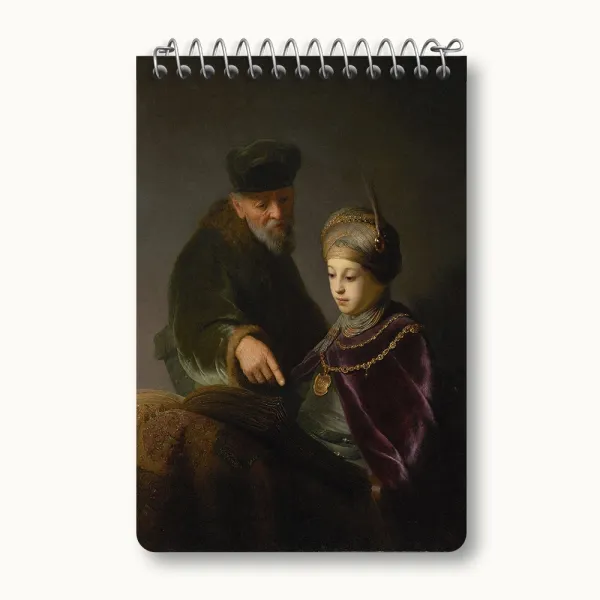 برند خندالو در زمینه تولید انواع دفاتر فانتزی و تحصیلی فعالیت میکند که به دلیل جذابیت ظاهری و طرح های متنوع طرفداران زیادی دارد. دفتر یادداشت خندالو طرح نقاشی یک محقق جوان و معلم او اثر رمبرانت محصولی مناسب برای همه عاشقان لوازم التحریر است و همچنین همه کسانی که بنا به موقعیت تحصیل یا شغلشان با دفتر و نوشت افزار زیاد سر و کار دارند. در تولید دفتر یادداشت خندالو طرح نقاشی یک محقق جوان و معلم او اثر رمبرانت از نوع صحافی فنر مارپیچ استفاده شده که در این نوع صحافی برگهها به راحتی چرخیده و یا بیرون آورده می شوند. دفتر های خندالو دارای جلد انعطاف پذیر از جنس مقوای گلاسه 250 گرم با روکش سلفون مات مخملی است که به شما امکان میدهد از دفتر خود بدون اینکه نگرانی از شکستن یا خراب شدن جلد را داشته باشید استفاده کنید و همچنین در این دفاتر از کاغذ 80 گرم با کیفیت استفاده شده که باعث میشود هنگام نوشتن به خوبی جوهر قلم بر روی صفحه نشسته و از خط خوردگیها جلوگیری کند. دفتر یادداشت خندالو با جنس و دوام مناسب، برگه های کاملاً سفید و خطوط طوسی دقیق را داراست که انسان را به نوشتن منظم و زیبا ترغیب میکند. طراحی کاملاً مناسب این دفاتر، به همراه کیفیت بالا، از آن یک محصول مورد علاقه و قابل اعتماد برای همه مقاطع تحصیلی میسازد. دفتر یادداشت خندالو طرح نقاشی یک محقق جوان و معلم او اثر رمبرانت انتخابی هوشمندانه و مناسب برای افرادی است که به دنبال دفتری با کیفیت و کاربرد عالی هستند. این دفتر، همراه خوبی برای شما در تمام مراحل تحصیل و کار خواهد بود و تجربهای لذتبخش از نوشتن و آموختن را به شما هدیه میدهد.