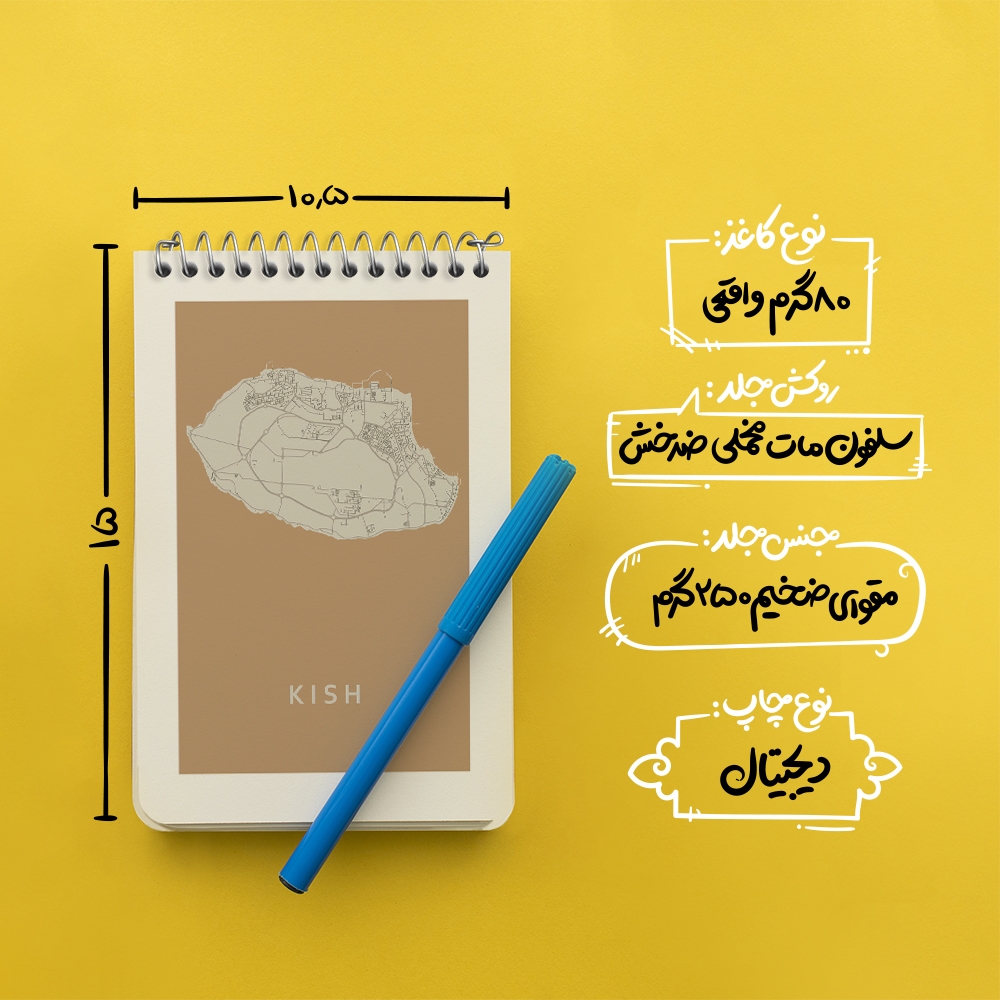 برند خندالو در زمینه تولید انواع دفاتر فانتزی و تحصیلی فعالیت میکند که به دلیل جذابیت ظاهری و طرح های متنوع طرفداران زیادی دارد. دفتر یادداشت خندالو طرح نقشه کیش محصولی مناسب برای همه عاشقان لوازم التحریر است و همچنین همه کسانی که بنا به موقعیت تحصیل یا شغلشان با دفتر و نوشت افزار زیاد سر و کار دارند. در تولید دفتر یادداشت خندالو طرح نقشه کیش از نوع صحافی فنر مارپیچ استفاده شده که در این نوع صحافی برگهها به راحتی چرخیده و یا بیرون آورده می شوند. دفتر های خندالو دارای جلد انعطاف پذیر از جنس مقوای گلاسه 250 گرم با روکش سلفون مات مخملی است که به شما امکان میدهد از دفتر خود بدون اینکه نگرانی از شکستن یا خراب شدن جلد را داشته باشید استفاده کنید و همچنین در این دفاتر از کاغذ 80 گرم با کیفیت استفاده شده که باعث میشود هنگام نوشتن به خوبی جوهر قلم بر روی صفحه نشسته و از خط خوردگیها جلوگیری کند. دفتر یادداشت خندالو با جنس و دوام مناسب، برگه های کاملاً سفید و خطوط طوسی دقیق را داراست که انسان را به نوشتن منظم و زیبا ترغیب میکند. طراحی کاملاً مناسب این دفاتر، به همراه کیفیت بالا، از آن یک محصول مورد علاقه و قابل اعتماد برای همه مقاطع تحصیلی میسازد. دفتر یادداشت خندالو طرح نقشه کیش انتخابی هوشمندانه و مناسب برای افرادی است که به دنبال دفتری با کیفیت و کاربرد عالی هستند. این دفتر، همراه خوبی برای شما در تمام مراحل تحصیل و کار خواهد بود و تجربهای لذتبخش از نوشتن و آموختن را به شما هدیه میدهد.