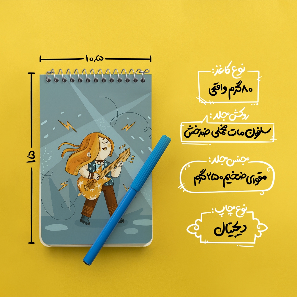 برند خندالو در زمینه تولید انواع دفاتر فانتزی و تحصیلی فعالیت میکند که به دلیل جذابیت ظاهری و طرح های متنوع طرفداران زیادی دارد. دفتر یادداشت خندالو طرح نوازنده گیتار الکتریک محصولی مناسب برای همه عاشقان لوازم التحریر است و همچنین همه کسانی که بنا به موقعیت تحصیل یا شغلشان با دفتر و نوشت افزار زیاد سر و کار دارند. در تولید دفتر یادداشت خندالو طرح نوازنده گیتار الکتریک از نوع صحافی فنر مارپیچ استفاده شده که در این نوع صحافی برگهها به راحتی چرخیده و یا بیرون آورده می شوند. دفتر های خندالو دارای جلد انعطاف پذیر از جنس مقوای گلاسه 250 گرم با روکش سلفون مات مخملی است که به شما امکان میدهد از دفتر خود بدون اینکه نگرانی از شکستن یا خراب شدن جلد را داشته باشید استفاده کنید و همچنین در این دفاتر از کاغذ 80 گرم با کیفیت استفاده شده که باعث میشود هنگام نوشتن به خوبی جوهر قلم بر روی صفحه نشسته و از خط خوردگیها جلوگیری کند. دفتر یادداشت خندالو با جنس و دوام مناسب، برگه های کاملاً سفید و خطوط طوسی دقیق را داراست که انسان را به نوشتن منظم و زیبا ترغیب میکند. طراحی کاملاً مناسب این دفاتر، به همراه کیفیت بالا، از آن یک محصول مورد علاقه و قابل اعتماد برای همه مقاطع تحصیلی میسازد. دفتر یادداشت خندالو طرح نوازنده گیتار الکتریک انتخابی هوشمندانه و مناسب برای افرادی است که به دنبال دفتری با کیفیت و کاربرد عالی هستند. این دفتر، همراه خوبی برای شما در تمام مراحل تحصیل و کار خواهد بود و تجربهای لذتبخش از نوشتن و آموختن را به شما هدیه میدهد.