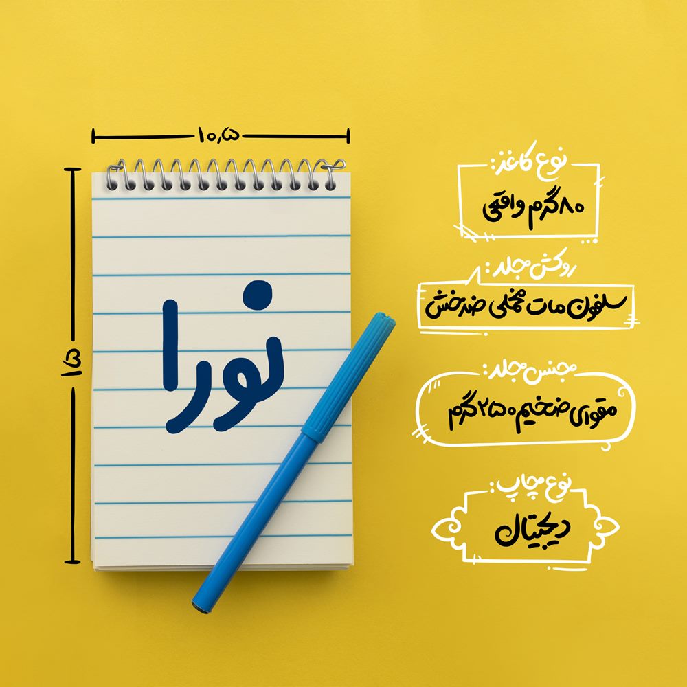 برند خندالو در زمینه تولید انواع دفاتر فانتزی و تحصیلی فعالیت میکند که به دلیل جذابیت ظاهری و طرح های متنوع طرفداران زیادی دارد. دفتر یادداشت خندالو طرح نورا محصولی مناسب برای همه عاشقان لوازم التحریر است و همچنین همه کسانی که بنا به موقعیت تحصیل یا شغلشان با دفتر و نوشت افزار زیاد سر و کار دارند. در تولید دفتر یادداشت خندالو طرح نورا از نوع صحافی فنر مارپیچ استفاده شده که در این نوع صحافی برگهها به راحتی چرخیده و یا بیرون آورده می شوند. دفتر های خندالو دارای جلد انعطاف پذیر از جنس مقوای گلاسه 250 گرم با روکش سلفون مات مخملی است که به شما امکان میدهد از دفتر خود بدون اینکه نگرانی از شکستن یا خراب شدن جلد را داشته باشید استفاده کنید و همچنین در این دفاتر از کاغذ 80 گرم با کیفیت استفاده شده که باعث میشود هنگام نوشتن به خوبی جوهر قلم بر روی صفحه نشسته و از خط خوردگیها جلوگیری کند. دفتر یادداشت خندالو با جنس و دوام مناسب، برگه های کاملاً سفید و خطوط طوسی دقیق را داراست که انسان را به نوشتن منظم و زیبا ترغیب میکند. طراحی کاملاً مناسب این دفاتر، به همراه کیفیت بالا، از آن یک محصول مورد علاقه و قابل اعتماد برای همه مقاطع تحصیلی میسازد. دفتر یادداشت خندالو طرح نورا انتخابی هوشمندانه و مناسب برای افرادی است که به دنبال دفتری با کیفیت و کاربرد عالی هستند. این دفتر، همراه خوبی برای شما در تمام مراحل تحصیل و کار خواهد بود و تجربهای لذتبخش از نوشتن و آموختن را به شما هدیه میدهد.