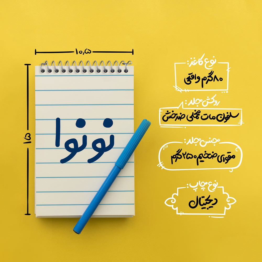 برند خندالو در زمینه تولید انواع دفاتر فانتزی و تحصیلی فعالیت میکند که به دلیل جذابیت ظاهری و طرح های متنوع طرفداران زیادی دارد. دفتر یادداشت خندالو طرح نونوا محصولی مناسب برای همه عاشقان لوازم التحریر است و همچنین همه کسانی که بنا به موقعیت تحصیل یا شغلشان با دفتر و نوشت افزار زیاد سر و کار دارند. در تولید دفتر یادداشت خندالو طرح نونوا از نوع صحافی فنر مارپیچ استفاده شده که در این نوع صحافی برگهها به راحتی چرخیده و یا بیرون آورده می شوند. دفتر های خندالو دارای جلد انعطاف پذیر از جنس مقوای گلاسه 250 گرم با روکش سلفون مات مخملی است که به شما امکان میدهد از دفتر خود بدون اینکه نگرانی از شکستن یا خراب شدن جلد را داشته باشید استفاده کنید و همچنین در این دفاتر از کاغذ 80 گرم با کیفیت استفاده شده که باعث میشود هنگام نوشتن به خوبی جوهر قلم بر روی صفحه نشسته و از خط خوردگیها جلوگیری کند. دفتر یادداشت خندالو با جنس و دوام مناسب، برگه های کاملاً سفید و خطوط طوسی دقیق را داراست که انسان را به نوشتن منظم و زیبا ترغیب میکند. طراحی کاملاً مناسب این دفاتر، به همراه کیفیت بالا، از آن یک محصول مورد علاقه و قابل اعتماد برای همه مقاطع تحصیلی میسازد. دفتر یادداشت خندالو طرح نونوا انتخابی هوشمندانه و مناسب برای افرادی است که به دنبال دفتری با کیفیت و کاربرد عالی هستند. این دفتر، همراه خوبی برای شما در تمام مراحل تحصیل و کار خواهد بود و تجربهای لذتبخش از نوشتن و آموختن را به شما هدیه میدهد.